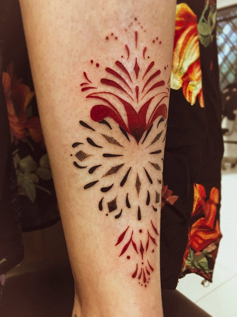 “Cresci desenhando na casa da minha avó, que é pintora. Durante toda minha vida explorei formas de me expressar por meio das artes visuais. Quando comecei a faculdade de design na UFMG, comecei a tatuar e desde então venho me aprofundando no ofício. Hoje em dia trabalho majoritariamente com tatuagens abstratas. Minha inspiração é a natureza e as forças que as regem.”