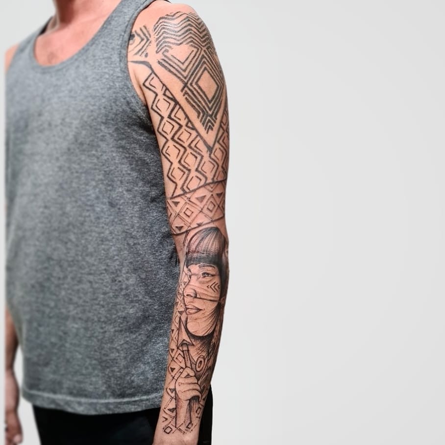 “Desde pequeno já amava desenhar, mas aos 17 anos iniciei um curso de designer de jogos e me apaixonei por pintura digital. Aos 19, incentivado por amigos e familiares, larguei o emprego que tinha para iniciar a carreira de tatuador, que já completa 2 anos e meio. Desde sempre quis trabalhar com sketch, já acompanhava o trabalho de artistas como Fredão Oliveira, RodFerod, Diego Shogum e Takazone. Sempre gostei de misturar pinceladas de tinta em meio aos meus trabalhos. E, com o tempo, tudo isso, somados com a minha paixão pelo universo geek, resultou no meu estilo: artes exclusivas que consideram a ergonomia do corpo com um design único e diferente.”