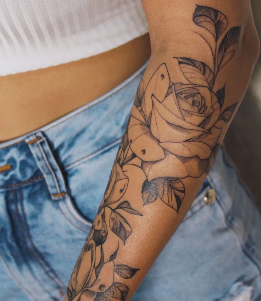 “Sou Isabela Matina, tatuadora há 5 anos. Designer gráfico de formação, a arte sempre esteve presente na minha vida, desde muito pequena. Os estilos que mais gosto de trabalhar são fineline, florais, blackwork e delicadas, em geral. Minhas referências atuais são @tirzasetta, @jessicapaixao, @selva.art, @carlacrisper e é claro o maridão @heliosabbatattoo.”