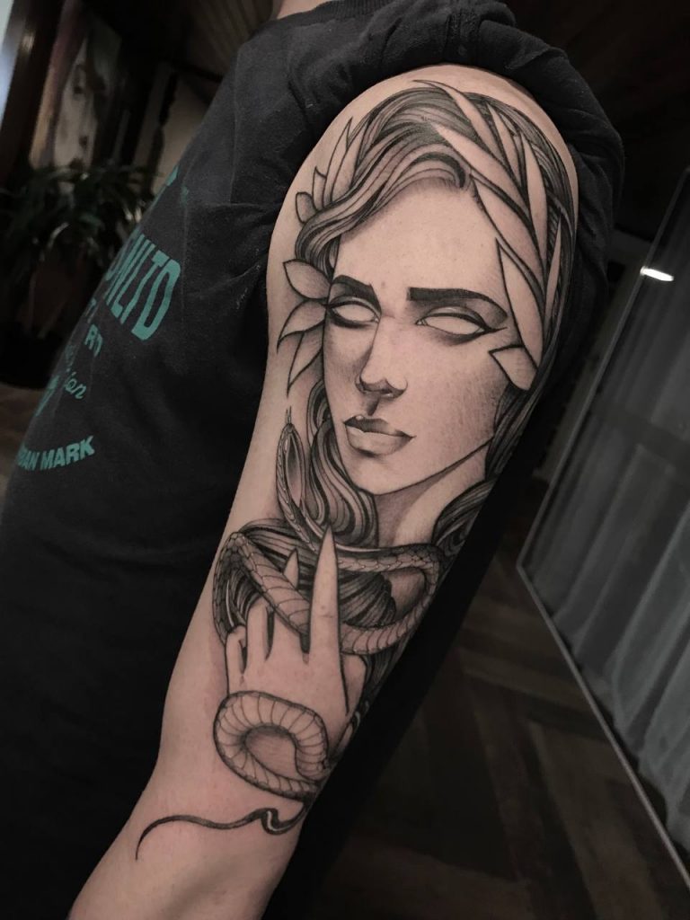 “Sempre quis trabalhar com arte e tatuo há quatro anos, sendo dois deles com cor. Meu trabalho é normalmente focado em animais e rostos femininos, com um toque de rpg/mundo fantasioso. Atendo no Laia junto com outros artistas incríveis.”❤️