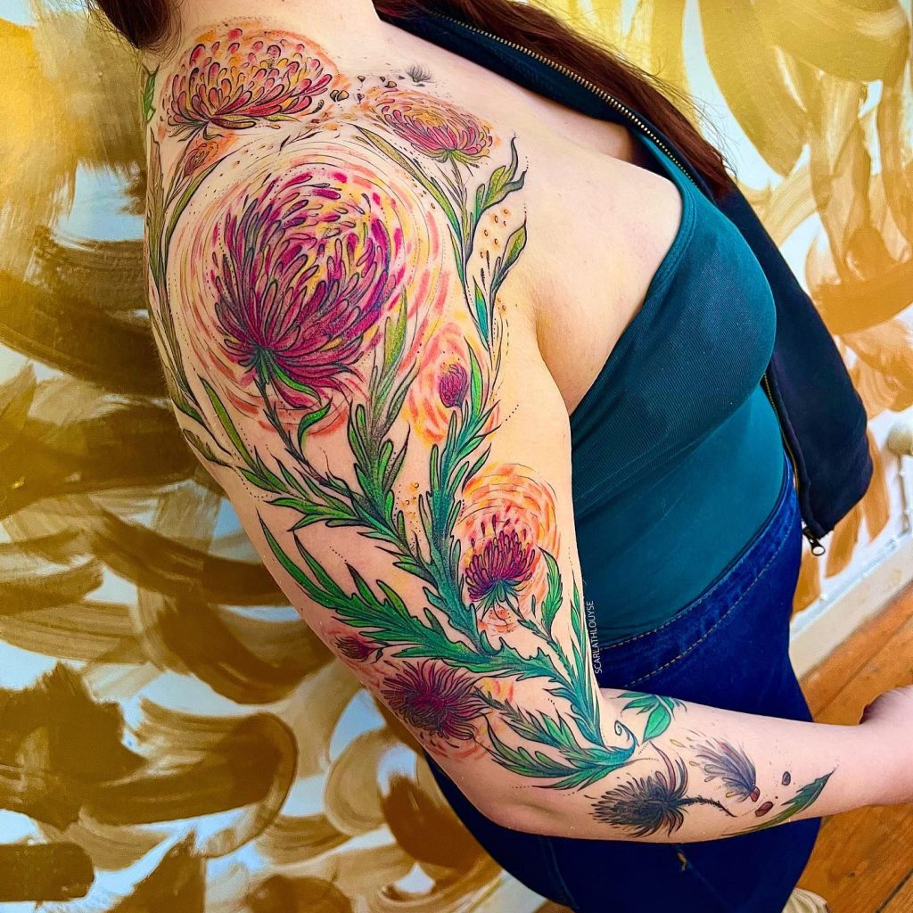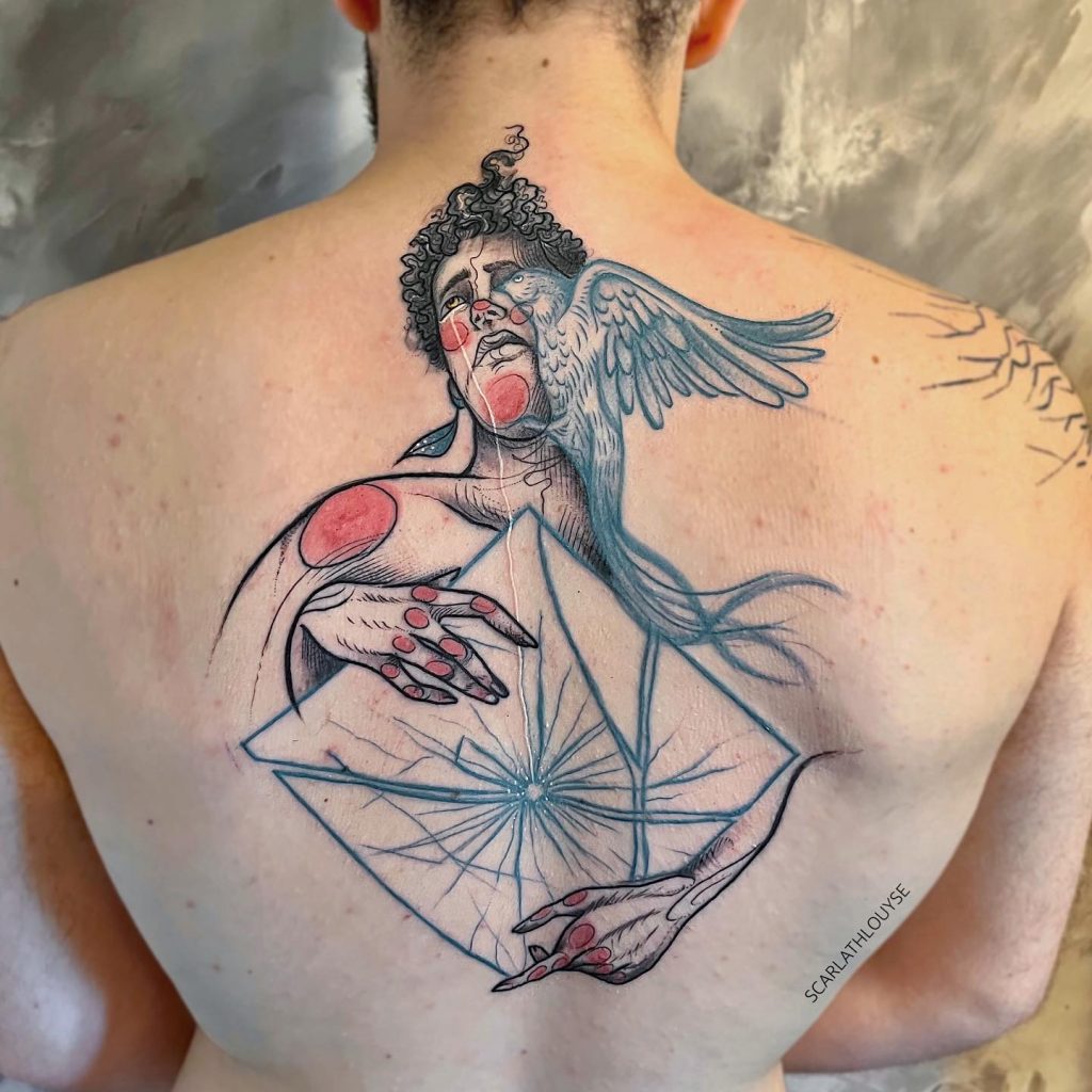 “Meu nome é Scarlath Louyse e chamo meu estilo de “arte sem nome “. Tatuo há 7 anos os meus desenhos inspirados nas histórias que as pessoas me contam sobre suas vidas, desejos , sonhos e transformo em tatuagem. Sou natural do Brasil, meu trabalho é uma forma de falar sobre meus sentimentos e acredito que a tatuagem autoral diz sobre usar nossa individualidade como suporte para a arte.”