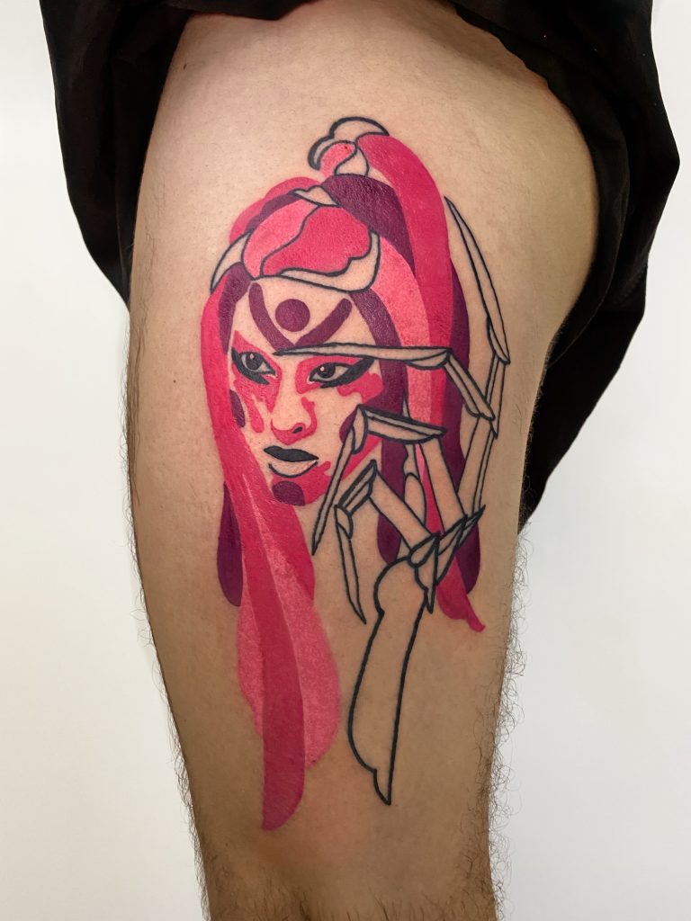 “Me chamo Hitomi, sou tatuadora há 3 anos e gosto muito de fazer tatuagens coloridas ou com apenas traços, também faço pets e maori. Atualmente estou trabalhando em criar minha própria linguagem para que as pessoas consigam reconhecer uma tatuagem minha. Minhas referências são meus colegas de trabalho, meu professor de desenho Paulinho, artistas nacionais como @reh.tattoo @felipheveiga e artistas internacionais como @mathieu.tiedrez.tattoo e @pliszkamagdalena.”