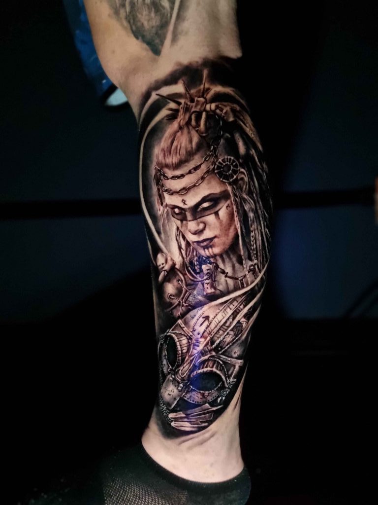 Andrew Iceman: tatuagem realista em Curitiba com alto contraste e acabamento impecável