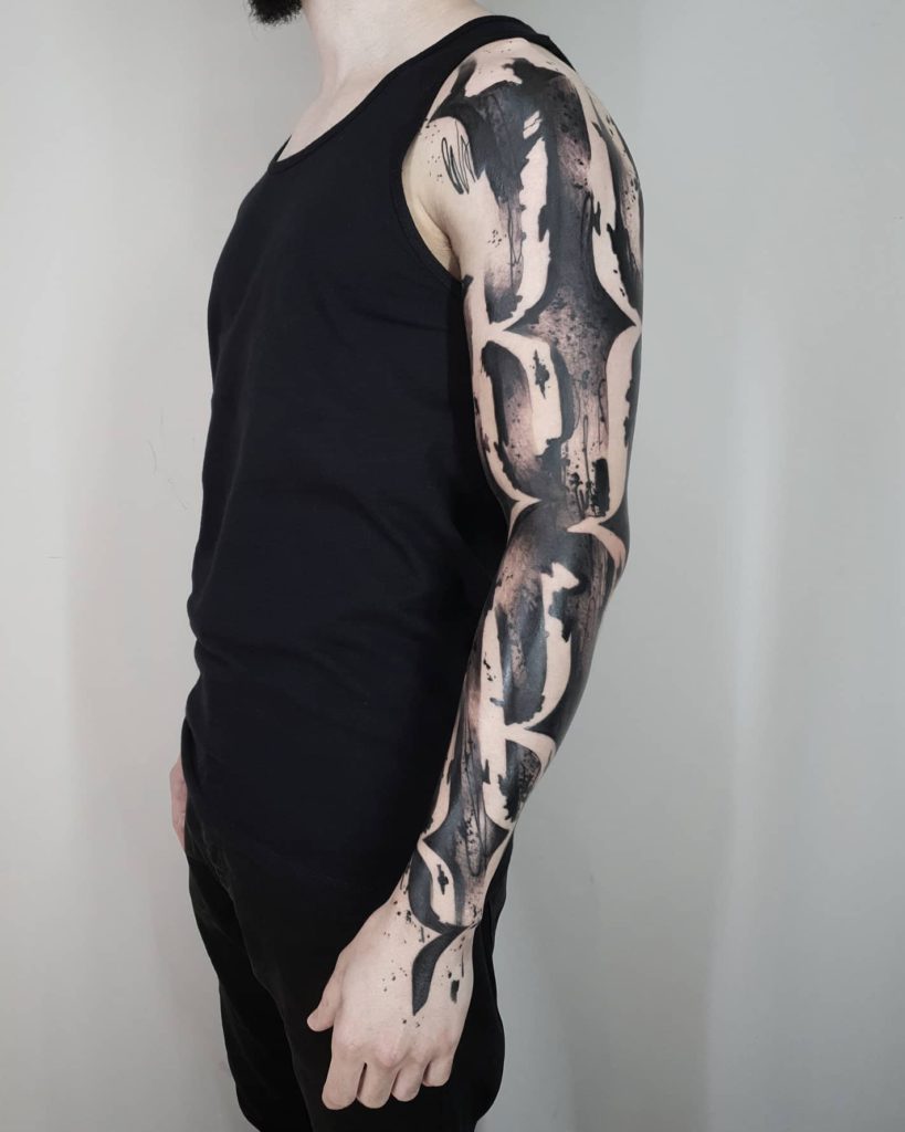 O tatuador Alessandro é de São Paulo, e quando você acompanha seu instagram vê um grande desafio nas coberturas de tatuagem, onde a criação do desenho para essa coverup é preciso fazer exclusivamente para os clientes. Além disso, suas artes sempre acompanham a anatomia do corpo dando fluides em cada traço: