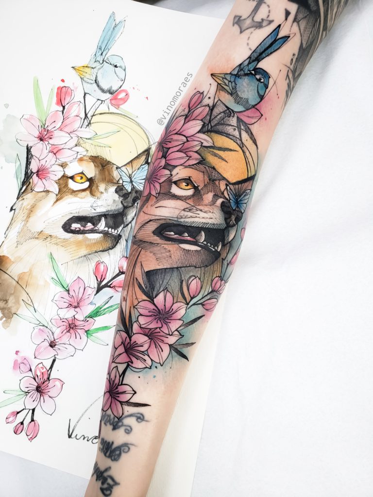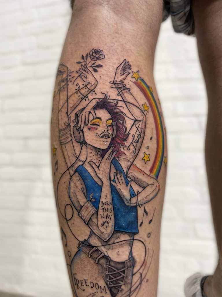 Desde então, venho aprendendo diariamente sobre a arte na pele, pude viajar por aí e conhecer grandes artistas (de pele, de muros, de telas e de tudo que se pode pintar). Gosto muito de me atualizar e não fixar em um jeito de pintar muito específico. Eu acredito muito que todo dia uma coisa nova nos faz mudar como pessoa e isso reflete diretamente na arte.