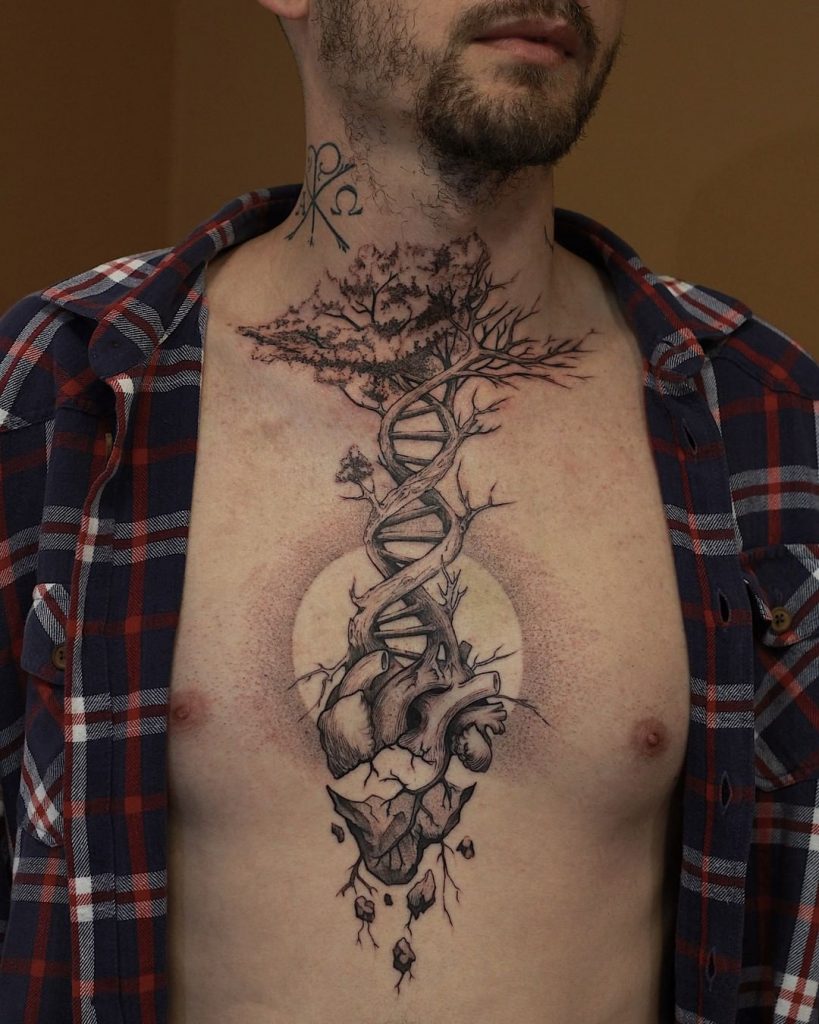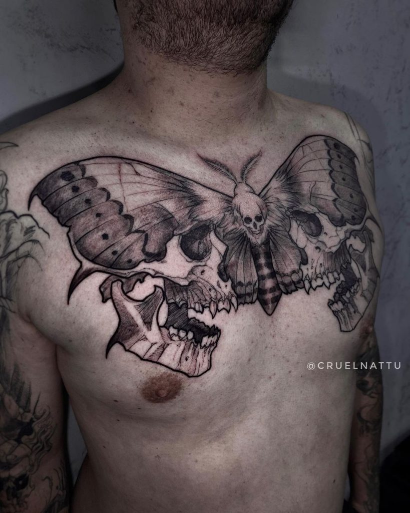 “Me chamo Lucas Bruni, tenho 30 anos, sou formado em design e atuo na tatuagem há 6 anos. Meu estilo de trabalho é o blackwork, desde flashes até trabalhos de grande escala e fechamentos, combinando linhas finas e grossas, pontilhismo e sombras carregadas de preto, combinando força e delicadeza, sempre pensando em como a tatuagem dialoga com o corpo. Tenho como inspiração ilustrações científicas, arte nouveau, barroco e gravuras japonesas.“