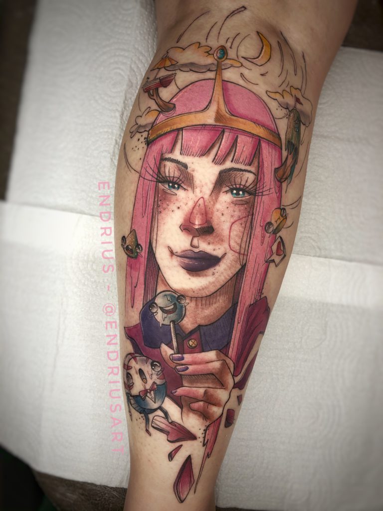 “Tudo começou quando meu irmão chegou com um kit de Tatuagem na república em que eu morava, e isso há quase 7 anos, como eu já tinha bastante gosto por desenho e tudo mais, me dediquei muito para aprender e evoluir nessa arte. Desde o início gostei de usar muitas cores e rabiscos! As minhas inspirações vêm do mix de cultura pop, cartoons, graffiti, música, arte e nostalgia.”