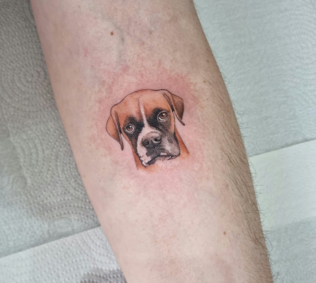 “Tatuadora há 13 anos, sempre me interessei pelo realismo e já desenhava animais desde pequena, tenho outros projetos fora da tatuagem com cães e encontrei neles a melhor forma de focar meu trabalho na tatuagem.”