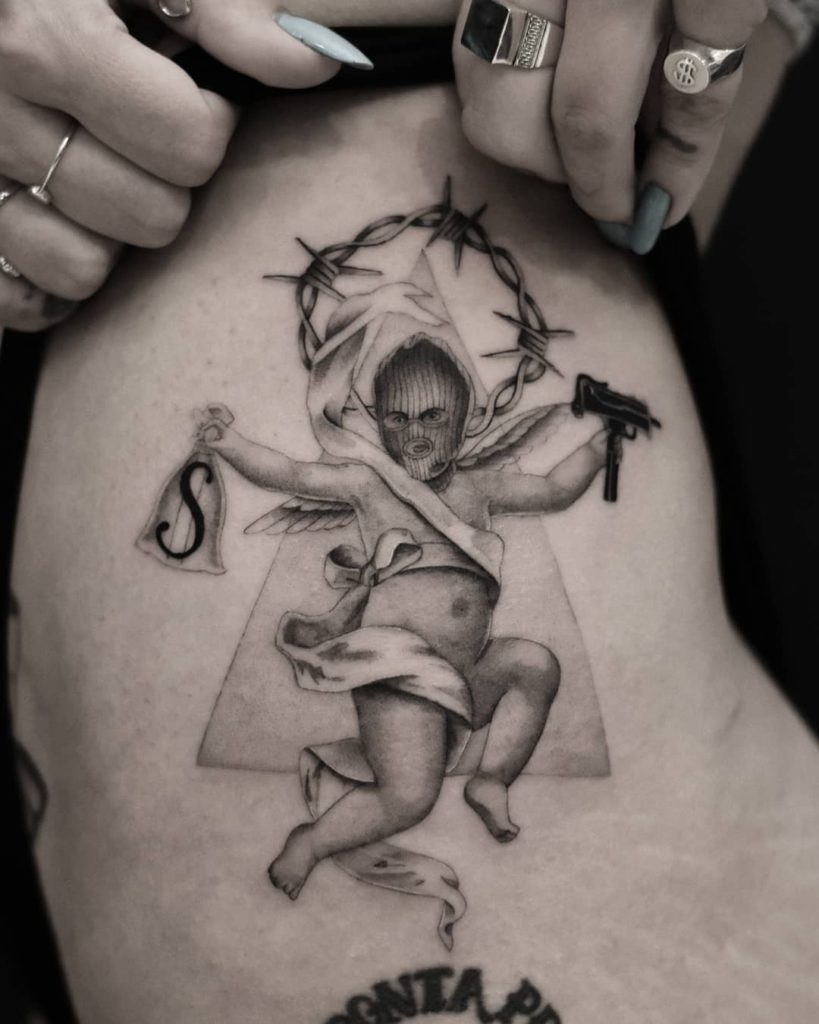 “Aos 12 anos de idade, já tendo gosto pelo desenho artístico, decidi começar a desenhar com luz e sombra, sempre admirei o realismo. Trabalhei e estudei design gráfico durante 3 anos, mas senti que algo me faltava, então decidi ouvir o que muitos me disseram e procurei um curso de tatuagem, me tornando tatuadora no dia 14 de setembro de 2019, assim me realizando. Hoje o realismo preto e cinza é meu maior foco, minhas inspirações são principalmente Mariana Silenzi com quem fiz um workshop de minirealismo, Chico Morbene, Samurai Standoff, Led Coult, @ben_tats @editpaints.”