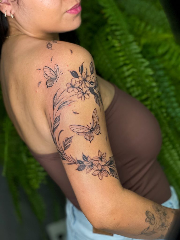Jéssica Mesquita encontra inspiração na natureza e expressa isso com beleza e leveza em suas criações. Ela desenvolveu o conceito de “Jardins”, onde mistura elementos botânicos com insetos, pássaros e outros animais, criando composições poéticas e cheias de personalidade. Seu estilo é o fineline, com traços delicados que revelam autenticidade em cada linha. Para Jéssica, tatuar é uma forma de conexão com pessoas que compartilham da mesma sensibilidade. Conheça esse talento e se encante com sua arte única.