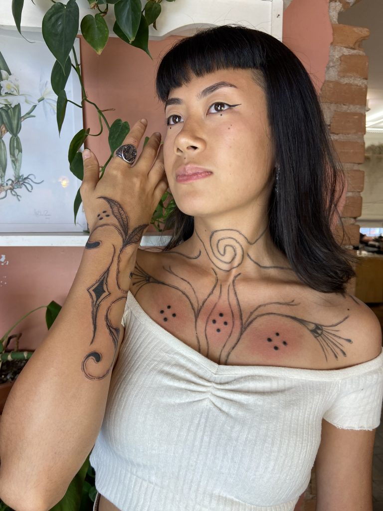 Nanda é apaixonada pela arte de transformar histórias através da tatuagem. Com 7 anos de estrada, ela se dedica a tatuagens femininas e coberturas, sempre com sensibilidade e escuta atenta. Seu processo criativo começa entendendo o sentimento por trás de cada traço e buscando resgatar a autoestima de quem a procura.