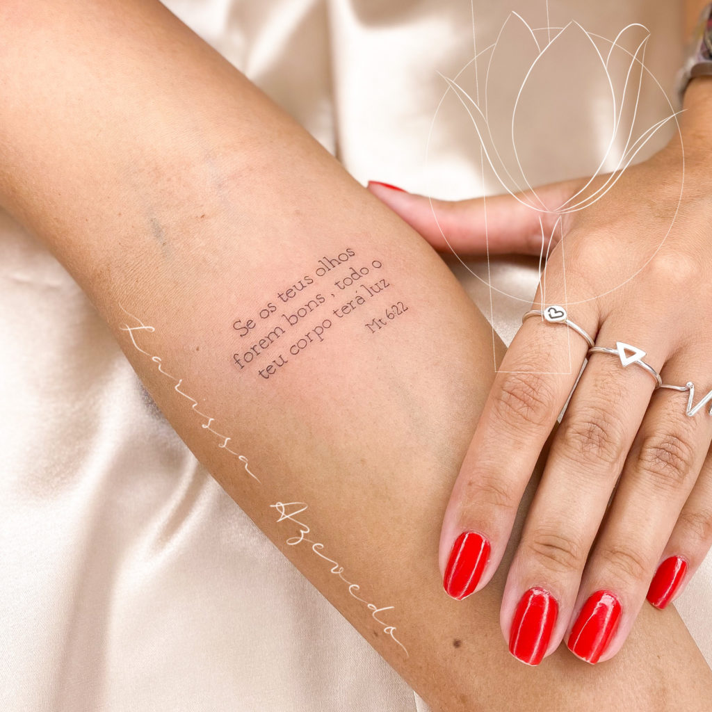 Mas lembre-se: Confie no seu tatuador para fazer sua tatuagem escrita minimalista.