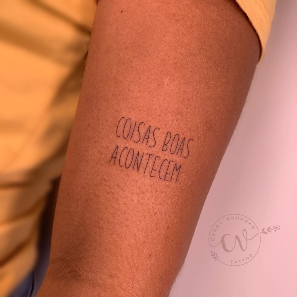 Tatuagem escrita minimalista pode trazer para a pele o que você acredita: