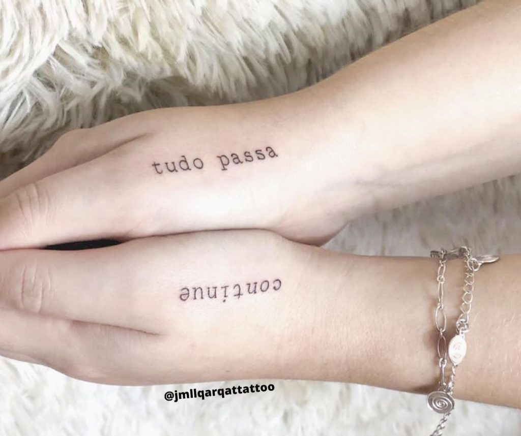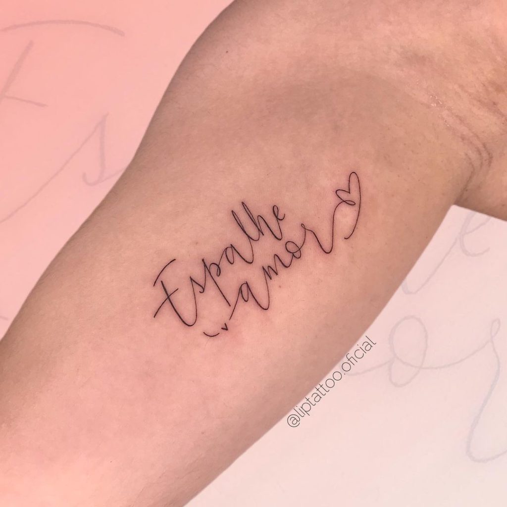 Tatuagem escrita minimalista pode ser feita com alguém ou separada: