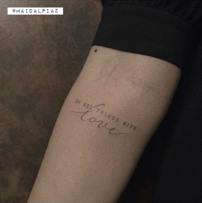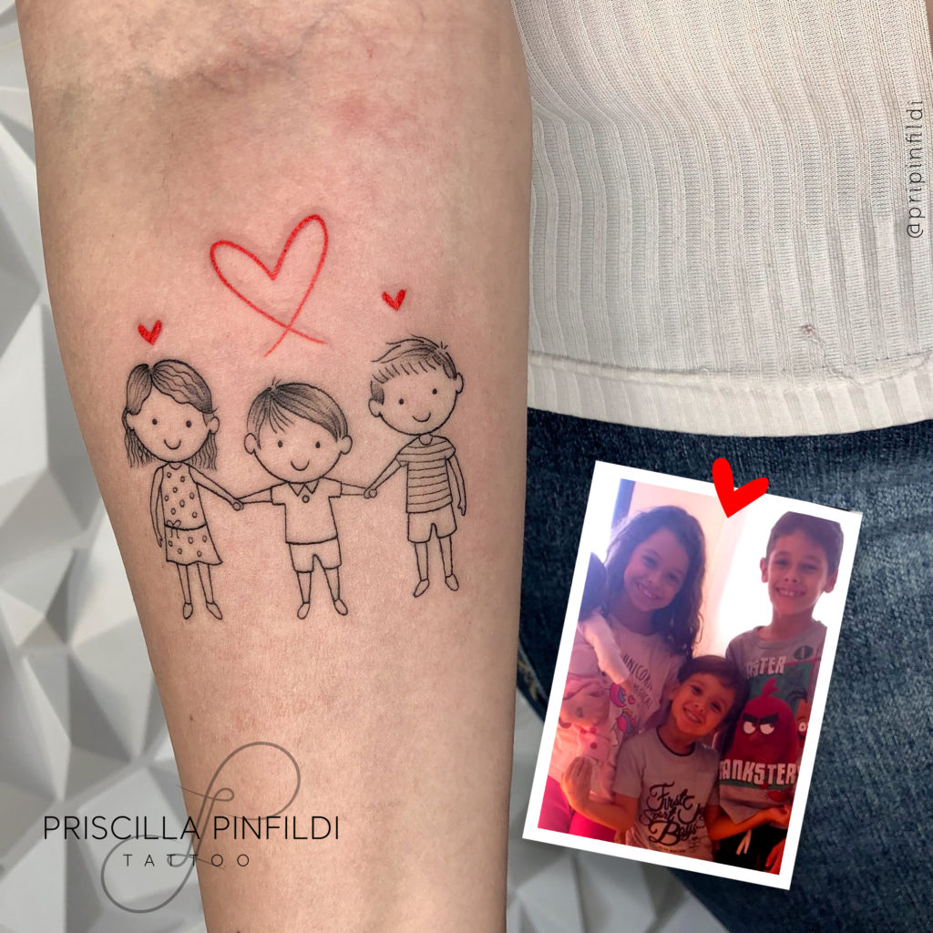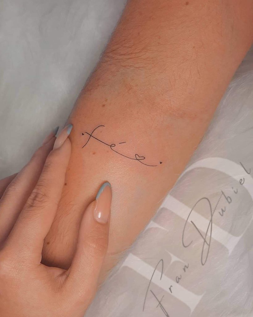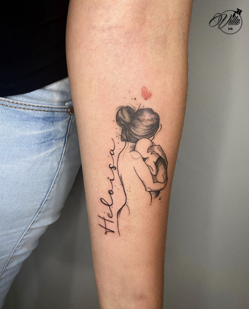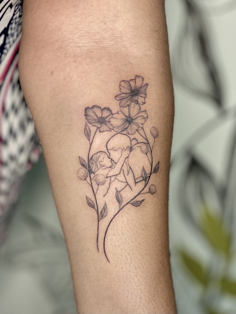É possível na tatuagem fineline fazer homenagens a pessoas queridas como escrever o nome, retratos minimalistas de uma linha só e uma palavra que simboliza situações que vocês viveram.
