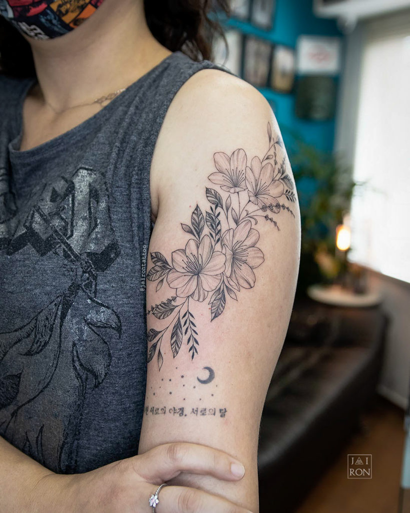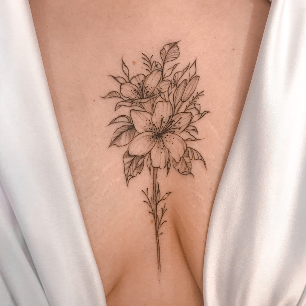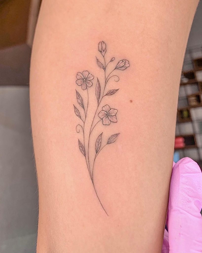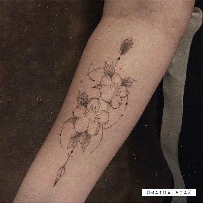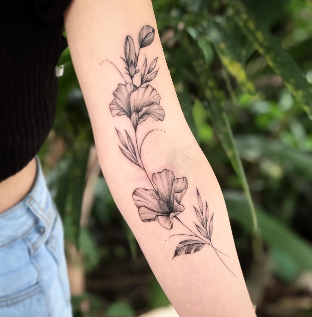 As linhas da Ju, já pensou ter estampando a sua bela tatuagem no braço? “Tatuo há 3 anos e, desde o início, trabalho com tatuagens delicadas. Atualmente, gosto de explorar a delicadeza para além de traços finos ou tatuagens pequenas: na composição do desenho, na harmonia das linhas, no posicionamento no corpo. Levando isso em consideração, meu tema preferido é o floral, pela fluidez e diversidade de formas!”