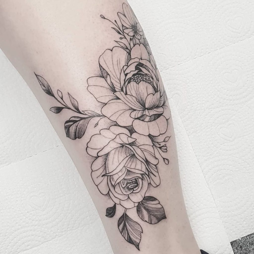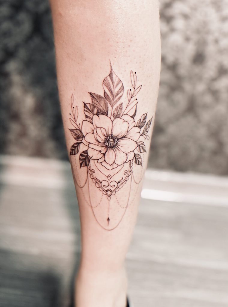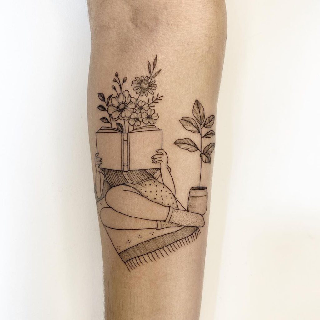 “Comecei a tatuar por influência do meu marido, que já é tatuador, há 5 anos atrás. Meu estilo de tattoo é o fineline, floral, ornamental e aquarela. Me inspiro na Antonina Rostra, Megan Massacre, Laura Anunnaki, e também em vários artistas brasileiros com traços maravilhosos como a Tatiana Alves e a Kris Yuka.”