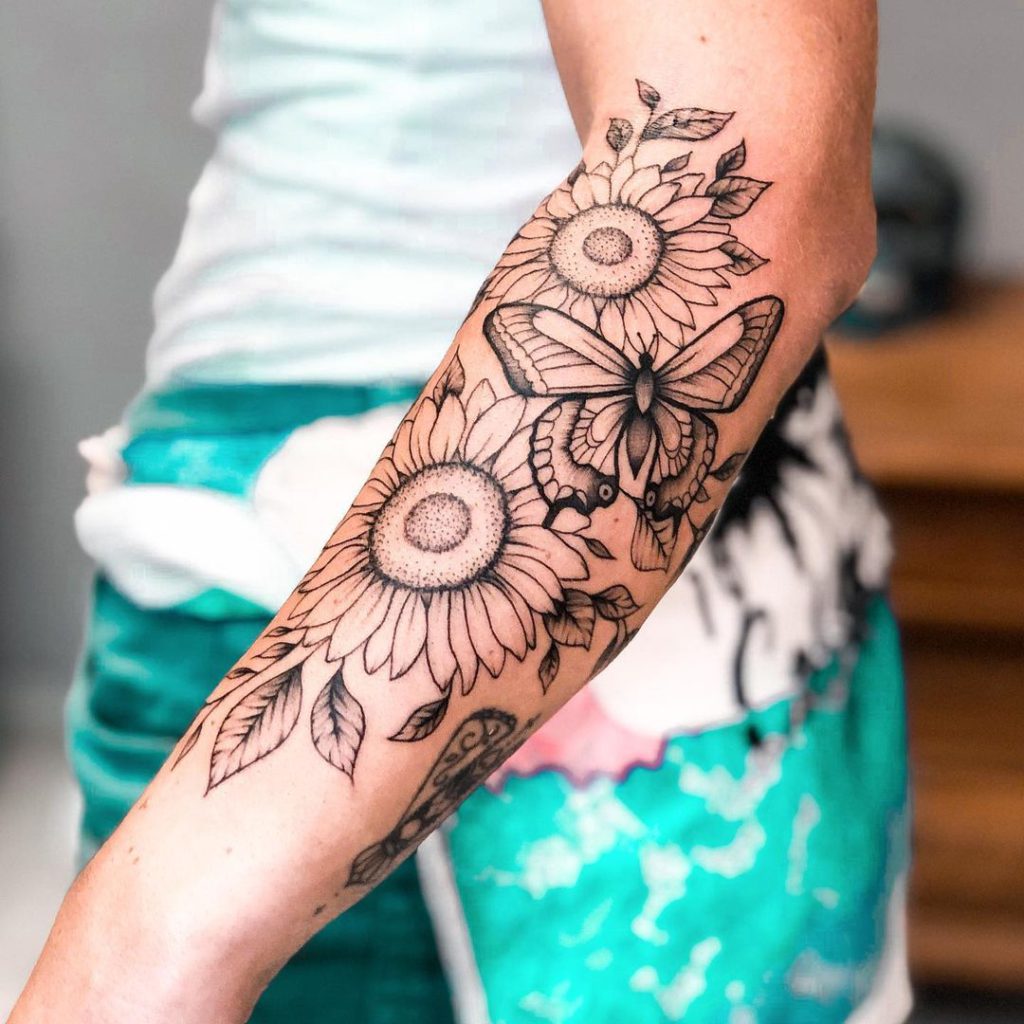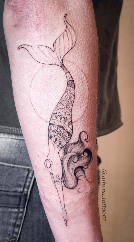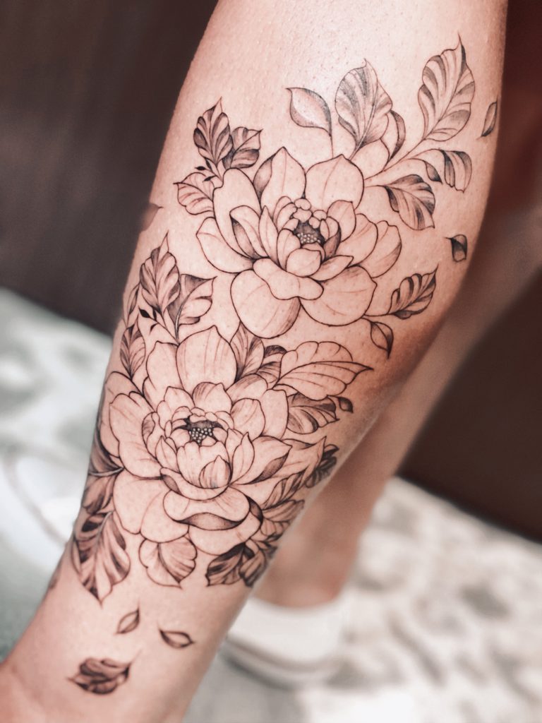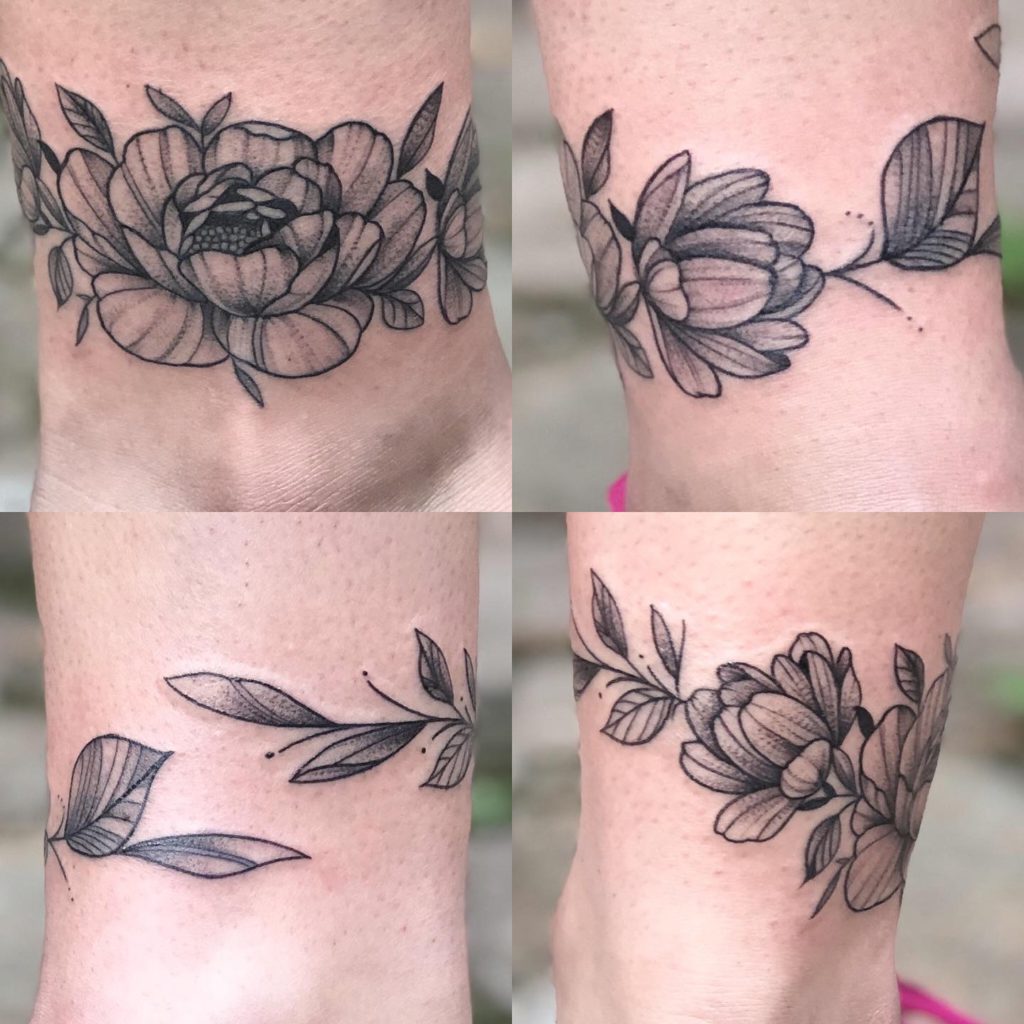 “Comecei a tatuar por influência do meu marido, que já é tatuador, há 5 anos atrás. Meu estilo de tattoo é o fineline, floral, ornamental e aquarela. Me inspiro na Antonina Rostra, Megan Massacre, Laura Anunnaki, e também em vários artistas brasileiros com traços maravilhosos como a Tatiana Alves e a Kris Yuka.”