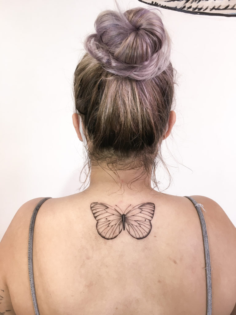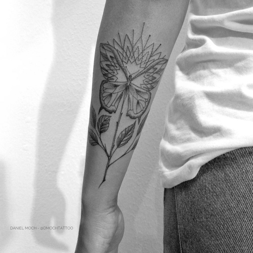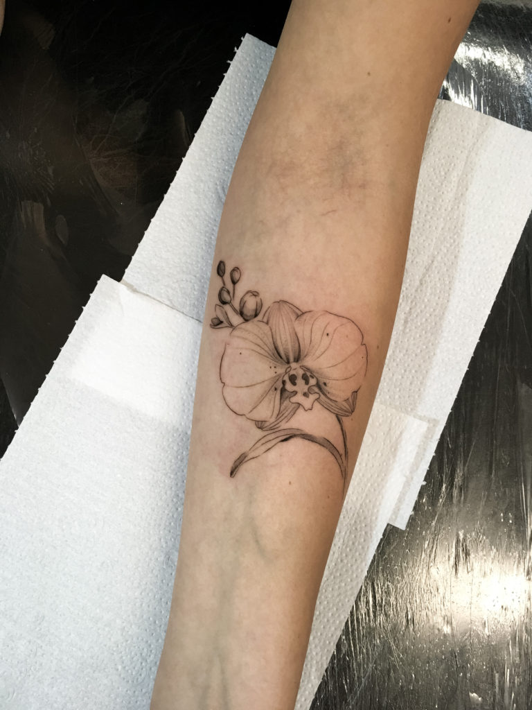 “Comecei a tatuar em 2013, por já ser interessada no universo da arte, me identifiquei desde cedo com o fineline. Passei a me apaixonar pela ilustração botânica, fui convidada para trabalhar em Berlin, na Alemanha, onde morei e tatuei por quase 2 anos. Tenho como referência o trabalho da Yana, Roman Itchev, Loretta e Gabriela Arzabe.”