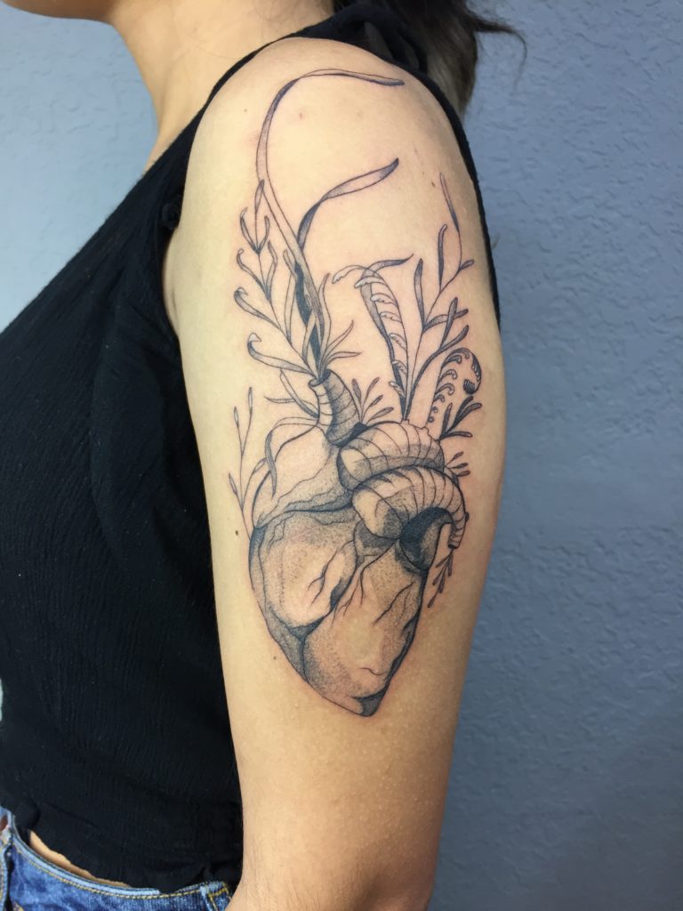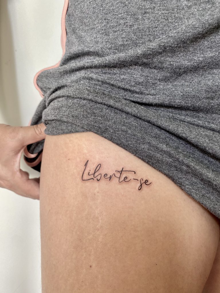 “Sou amante da arte desde pequena, me recordo da minha infância em que minha mãe sentava comigo e ficávamos horas desenhando. Minha história com a tatuagem começou quando eu tinha 18 anos, há 4 anos e desde então me sinto realizada. Meu esposo que na época era apenas meu namorado, quem me incentivou, apoiou e apresentou esse mundo. Hoje me emociono com todas as mulheres que passam por minha maca, eternizar na pele tantas histórias e emoções, fazendo para elas e por elas o que não conseguiram fazer por si só! Digo que a arte sempre foi luz na minha passagem por essa vida. Minha inspiração vem de tudo, vem do nada. Hoje minha especialidade é o traço “hiperfino” penso que posso chamá-lo assim hahaha, tatuagens botânicas e escritas sofisticadas. Considero cada trabalho que faço uma joia eternizada na pele.”