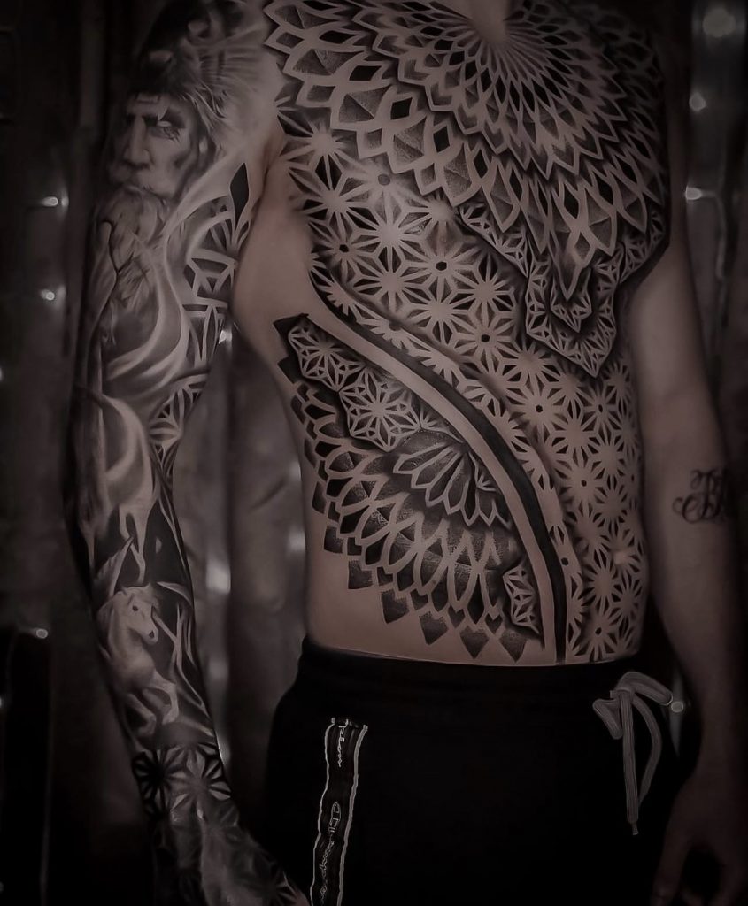 Na tatuagem geométrica de alto nível, os limites do corpo são aliados.