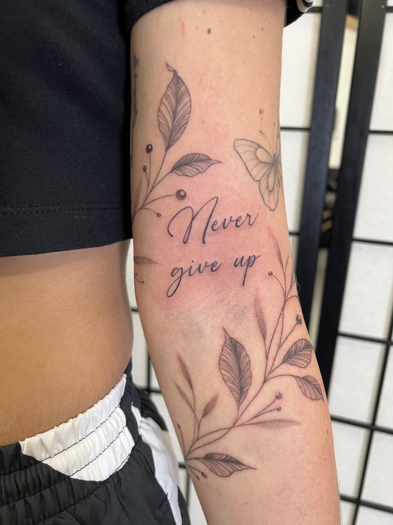 Julia D’Alkmin é uma artista de tatuagem dedicada e talentosa, que cria desenhos fineline e autorais com uma abordagem feminista, original e vegana. Ela está sempre em movimento, fazendo visitas artísticas em cidades como Nova York, Chicago e Montreal. Baseada no @lina.atelie em São Paulo, Brasil, Julia tatua há mais de 8 anos, e ela é acessível e acolhedora, sempre disposta a receber um “oi” através de seu e-mail: [email protected].