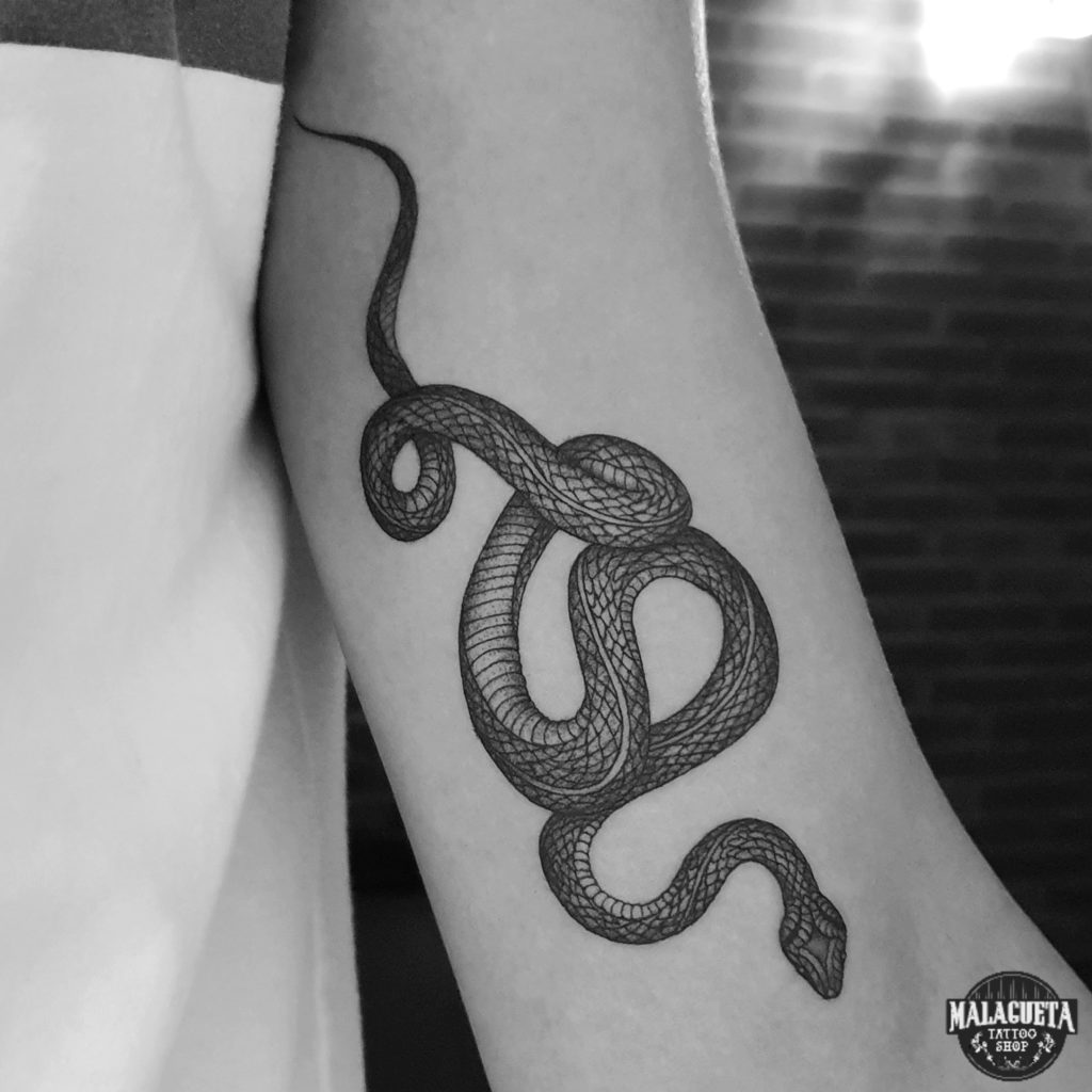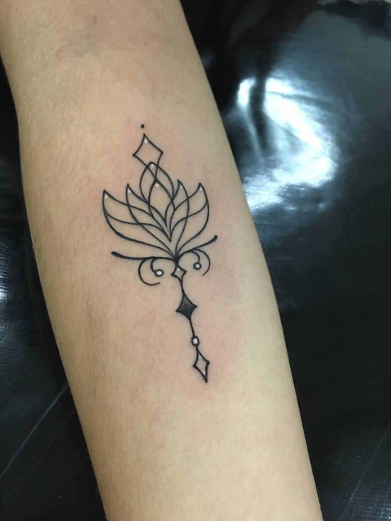 “Sou auto didata, desde pequena me interessei pela experimentação dentro das artes plásticas e visuais, em diversos âmbitos. Posso traduzir a linguagem estética do meu trabalho por meio de uma lembrança: “ainda no ensino fundamental, lembro de estar fazendo o exercício de caligrafia, ao errar a escrita não quis apagar a palavra. Mesmo escrita errada, achei cada risco, cada laço entre as sílabas tão bonito que seria um desperdício apagar linhas tão viçosas.” Tenho muito prazer até hoje em projetar linhas longas e precisas, agora aplicadas as minhas ilustrações e tatuagens. E foi dessa forma que iniciei e me encontrei no meio da tatuagem.”