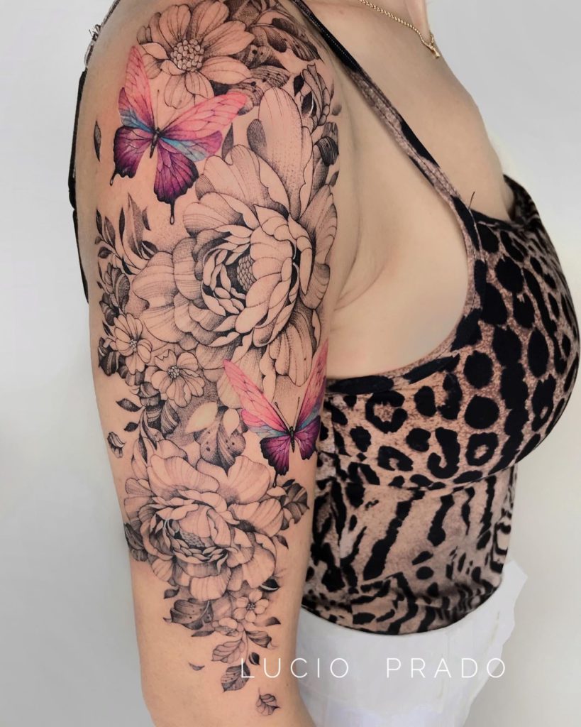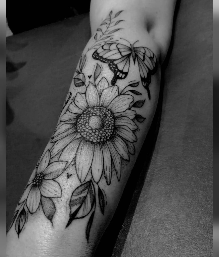 “Eu sempre gostei de arte e decidi tatuar por insistência de amigos, tem três anos. Eu costumo dizer que faço a pele dos meus clientes um jardim porque faço florais incríveis com traço delicado. Minha maior inspiração é a própria natureza, eu sempre uso flores reais para criar meus desenhos.”