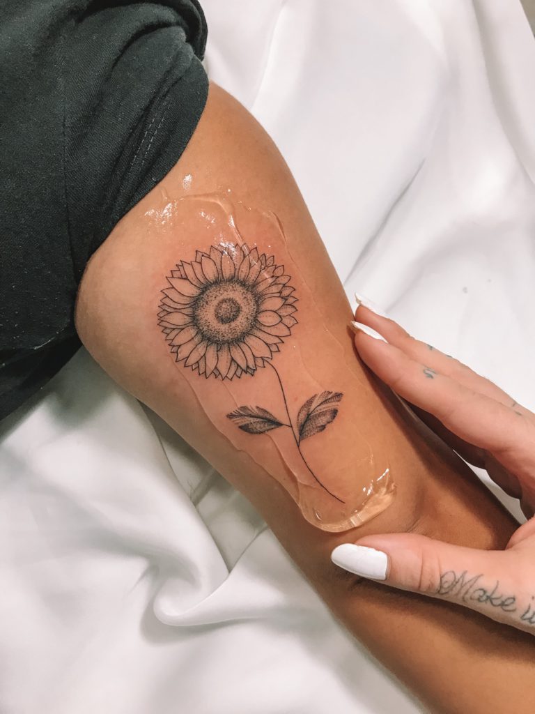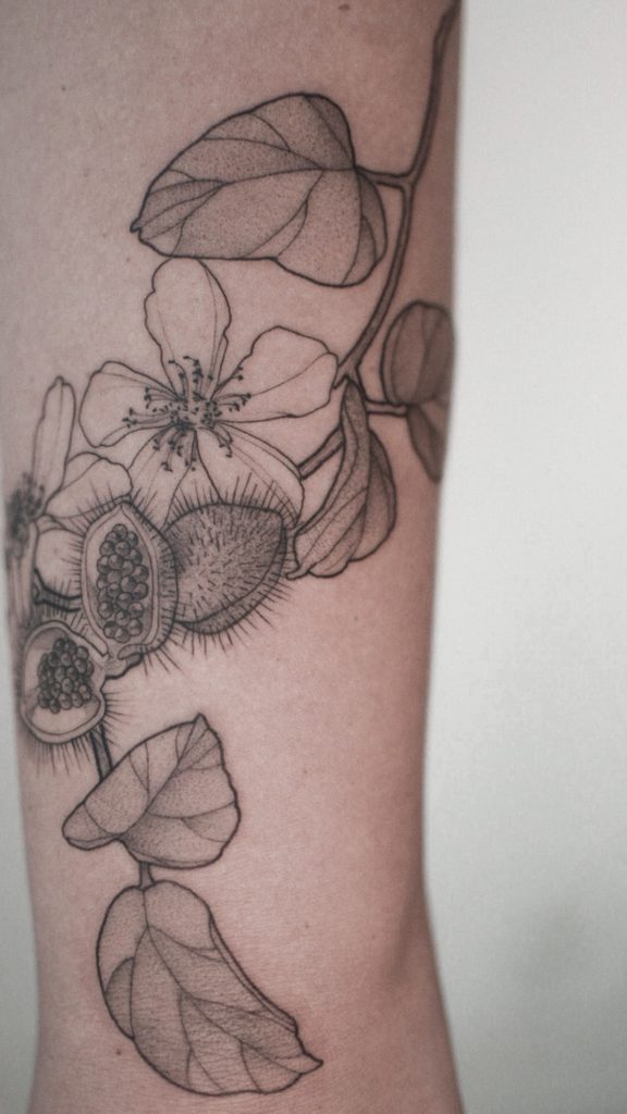 Tatuagem no estilo fineline podem ser tattoos no tema botânico.