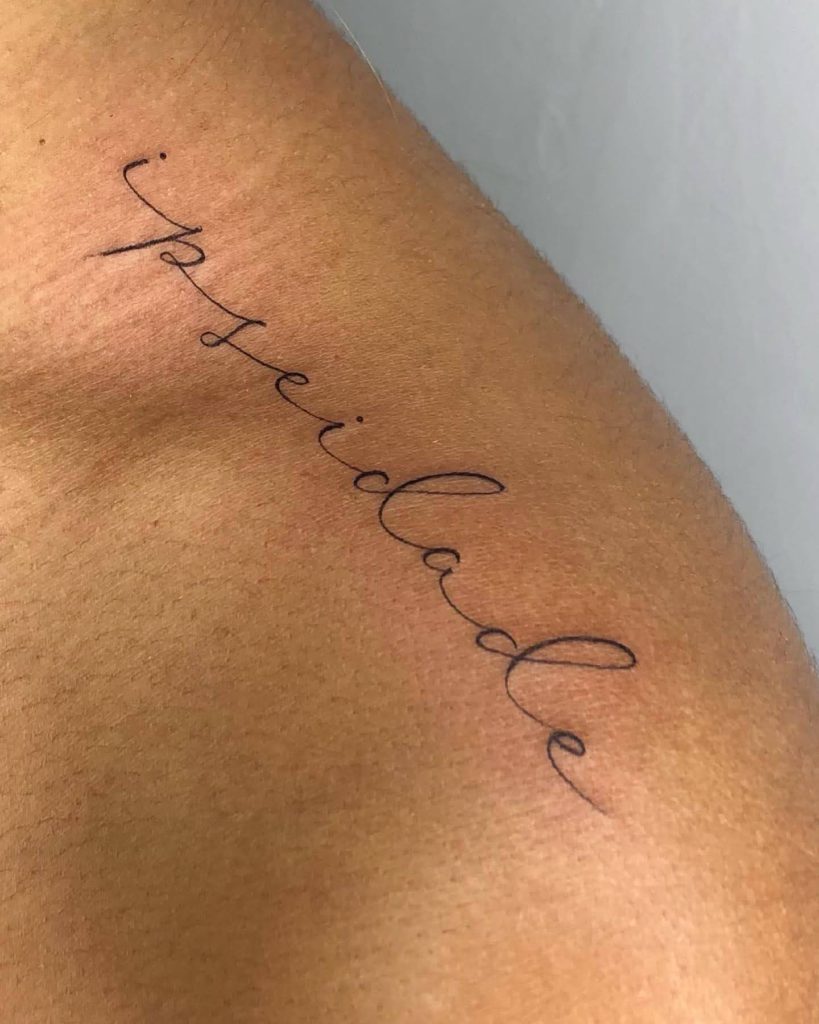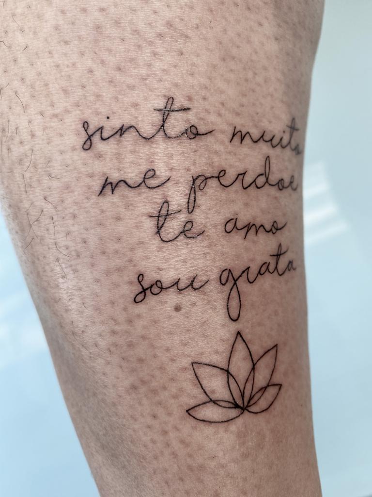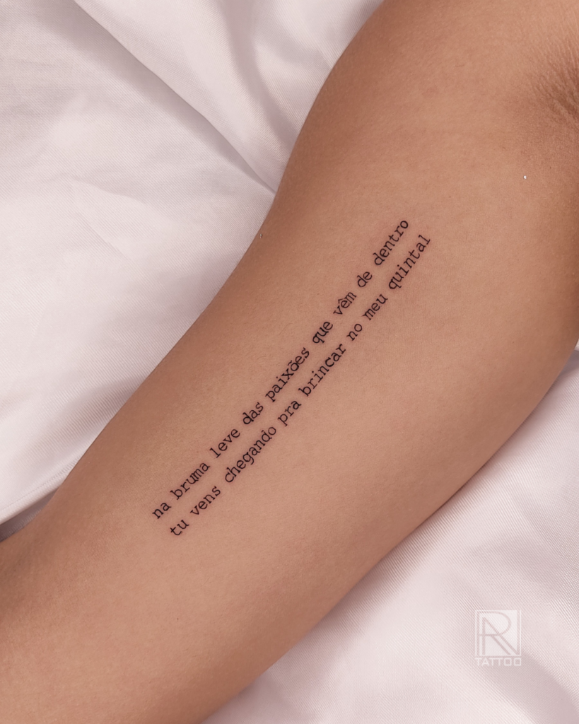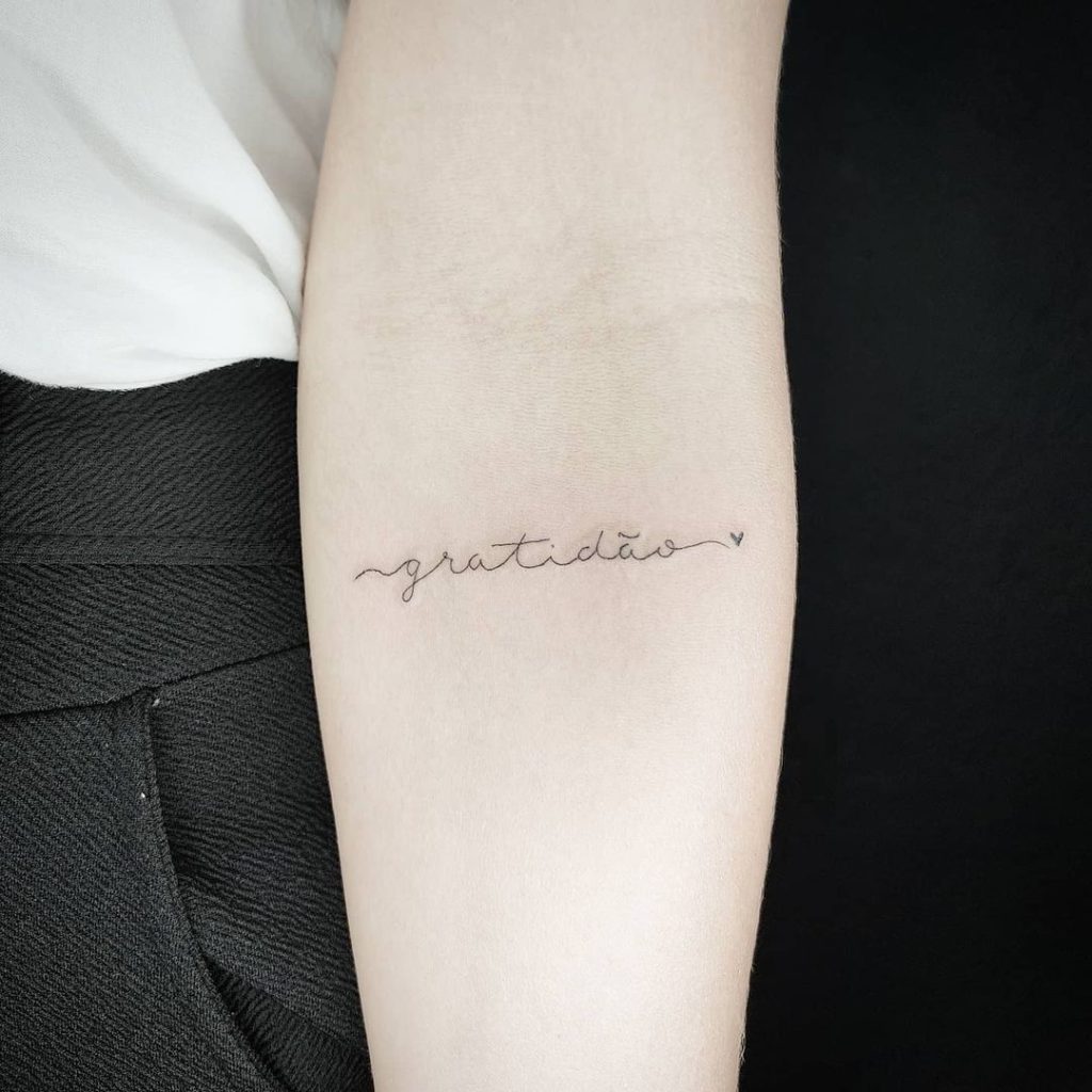 Tatuagem no estilo fineline podem ser escritas minimalistas.