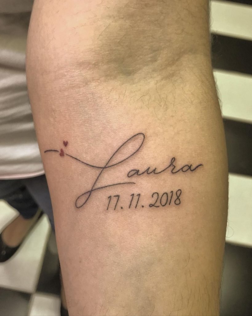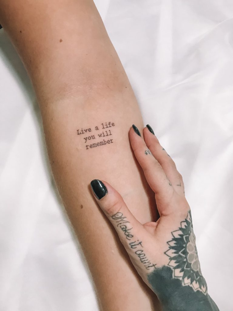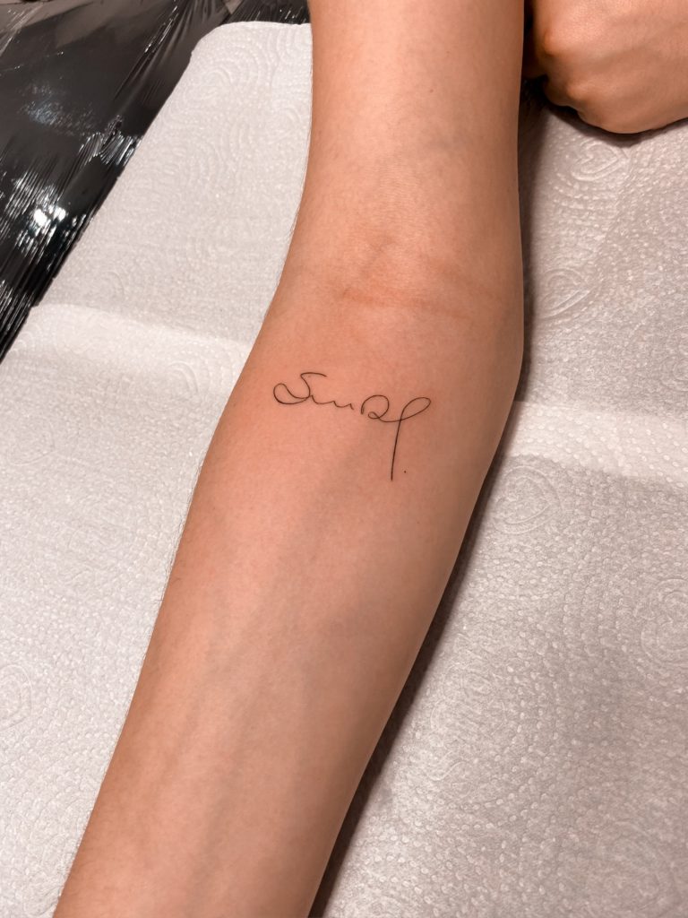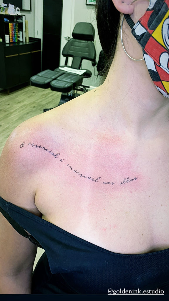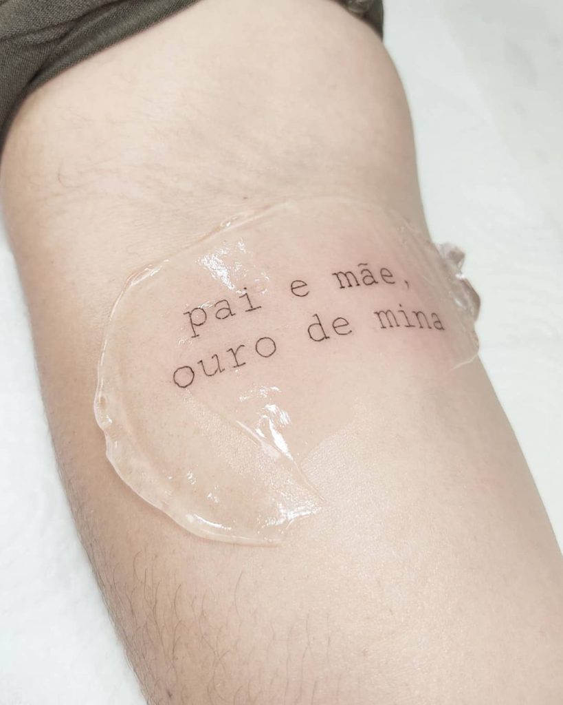 Tatuagem no estilo fineline podem ser escritas minimalistas.