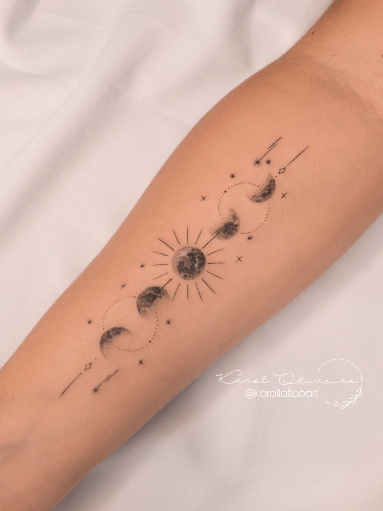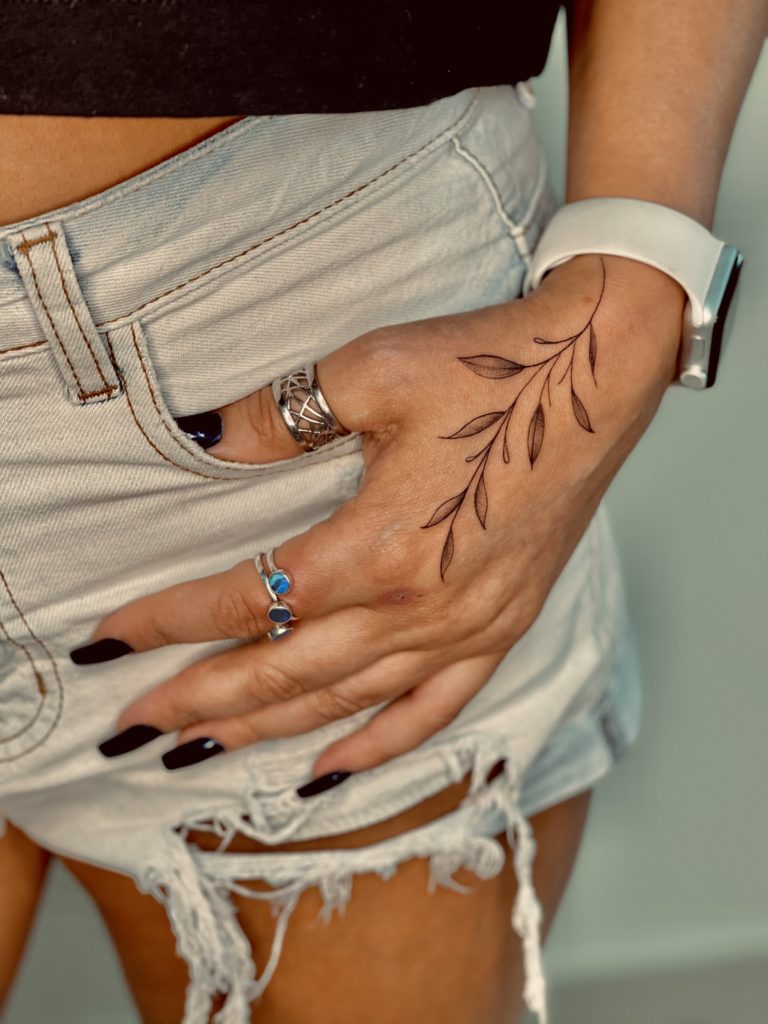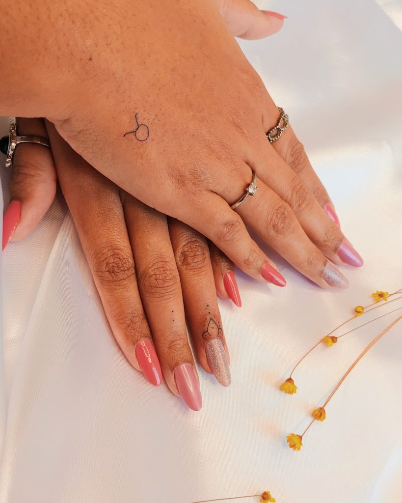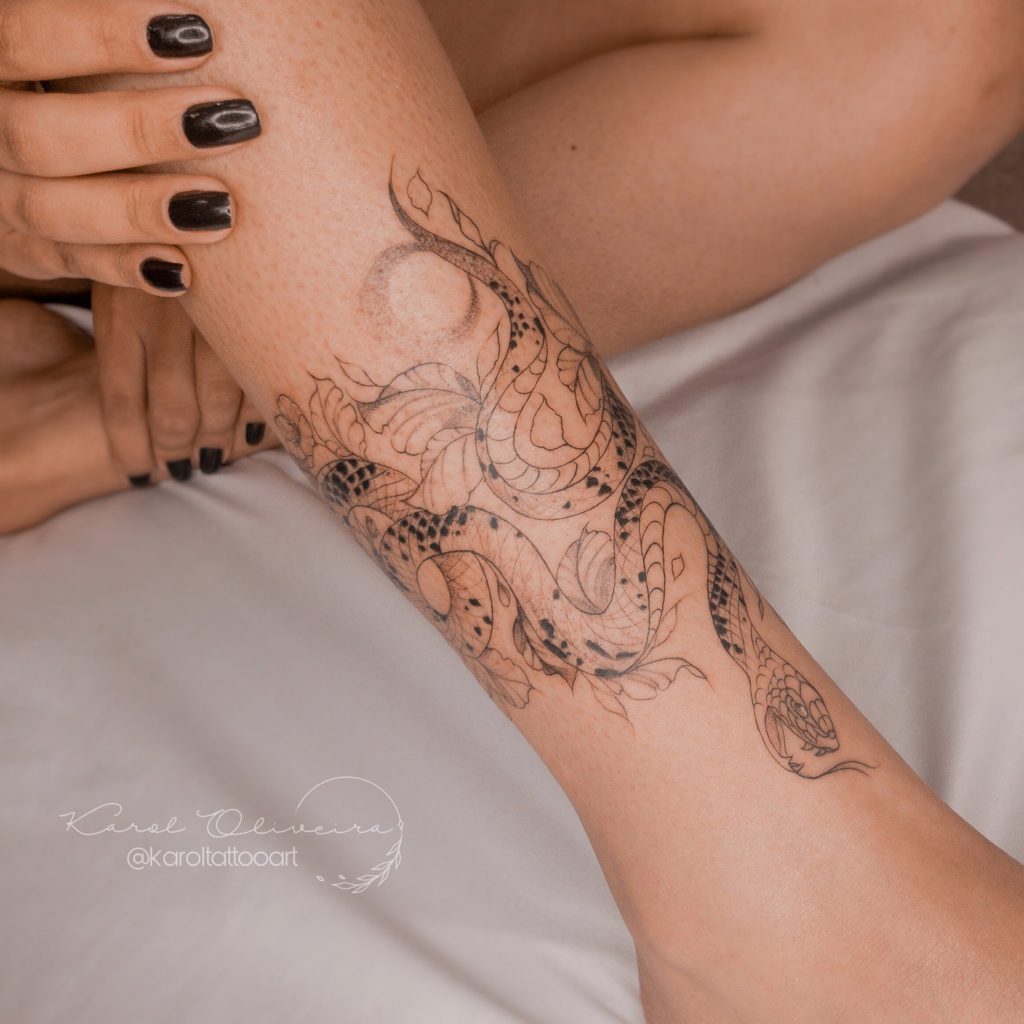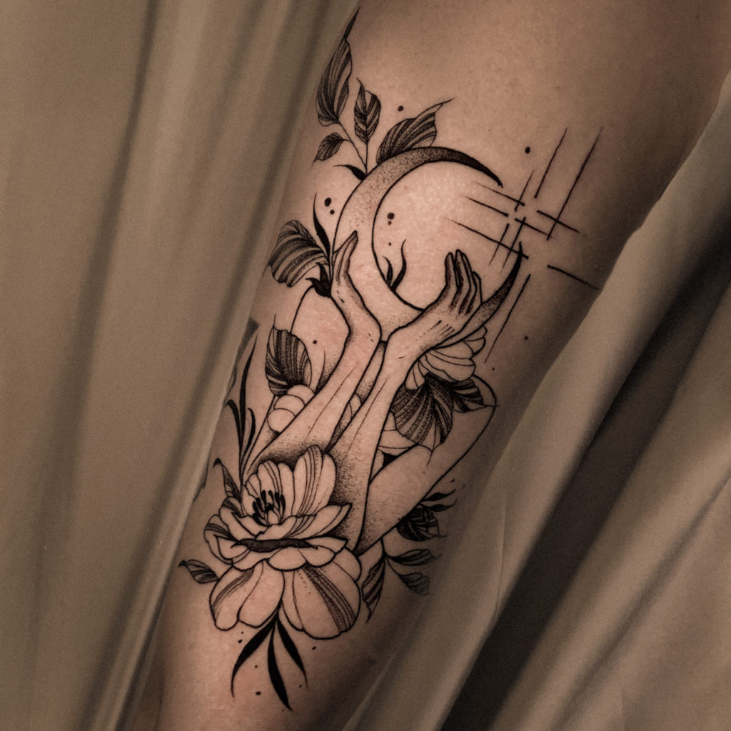 “Desde a infância sempre fui muito ligada a arte. Seja ela qual for, não foi diferente quando tive que decidir o que eu iria fazer ao me tornar “adulta” kkk. Me formei em design gráfico em 2019 e desde então, vi possibilidades na arte que nunca tinha percebido, como, por exemplo, a tatuagem. Faz então 3 anos desde que me descobri como tatuadora e vivo intensamente a arte na forma mais pura e agradável, mexendo na autoestima de cada um de forma mais particular possível e entregando os traços mais delicados que consigo. Minhas maiores inspirações são: Pedro Gomes, Suelyn Ink, Dani Marini, Carla Crisper, Rodrigo Moinhos e Gil Pereira. Artistas que me despertam vontade de ser melhor a cada dia!”