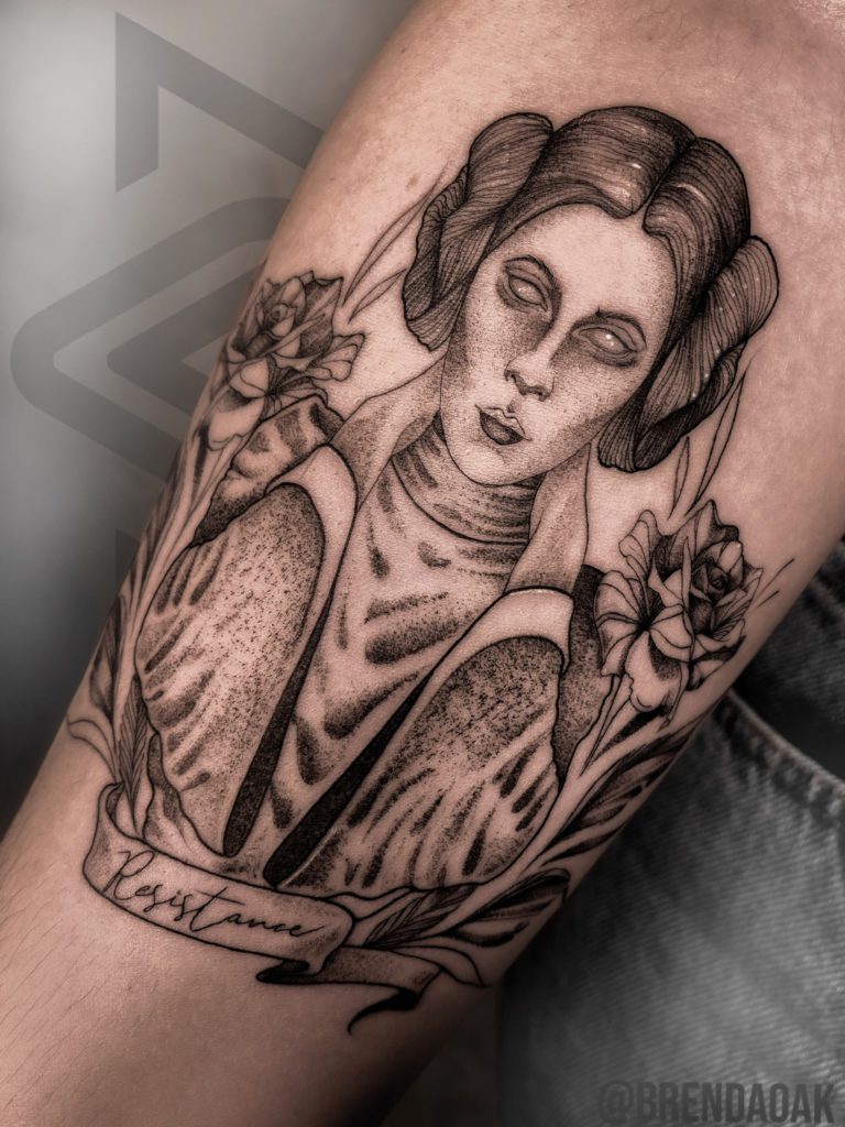“A arte faz parte da minha vida desde a infância. Sempre amei desenhar, pintar, criar e a tatuagem entrou na minha vida no final de 2018, quando eu ainda era acadêmica de direito e comércio exterior, mas resolvi iniciar a busca pelo sonho de trabalhar desenhando e ter uma profissão com horários flexíveis para poder ficar mais perto da minha filha recém-nascida. A sensação de paixão que surgiu no primeiro traço ainda está fresca na minha memória! Larguei emprego, mudei de cidade e, certa de que tudo daria certo, comecei a enfrentar os desafios que a maioria – senão todos – os iniciantes enfrentam. Em 2021 cá estou firme no propósito e meu amor por esse universo só cresce. Sei o quanto me dedico e estou nem perto de tudo o que quero evoluir nessa profissão!” ❤️