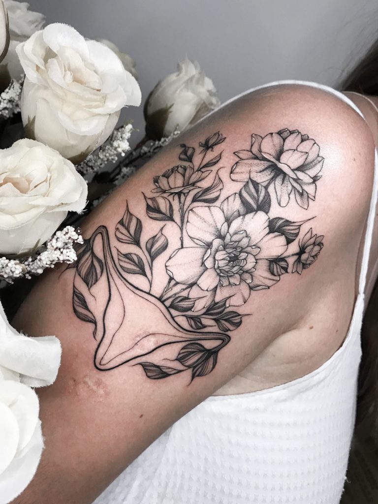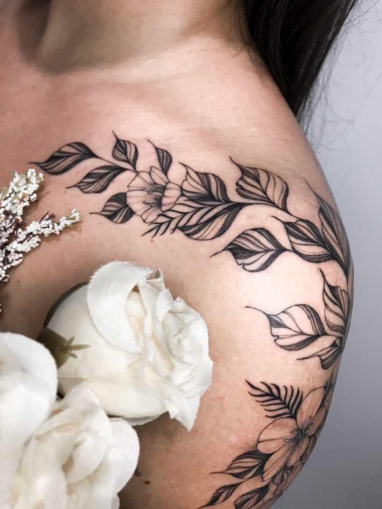 Tatuagens florais em blackwork e fineline: um fenômeno!