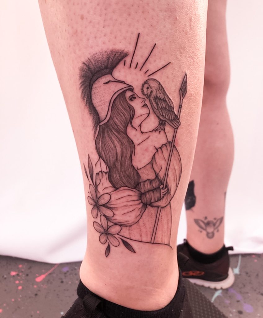 “O desenho me acompanha desde a infância, mas nunca tinha imaginado entrar no meio da tatuagem. Faz 4 anos desde que me descobri nesse mundo! Trabalho principalmente com traços finos (fineline). Amo trazer auto estima através dos meus traços na pele de alguém.”