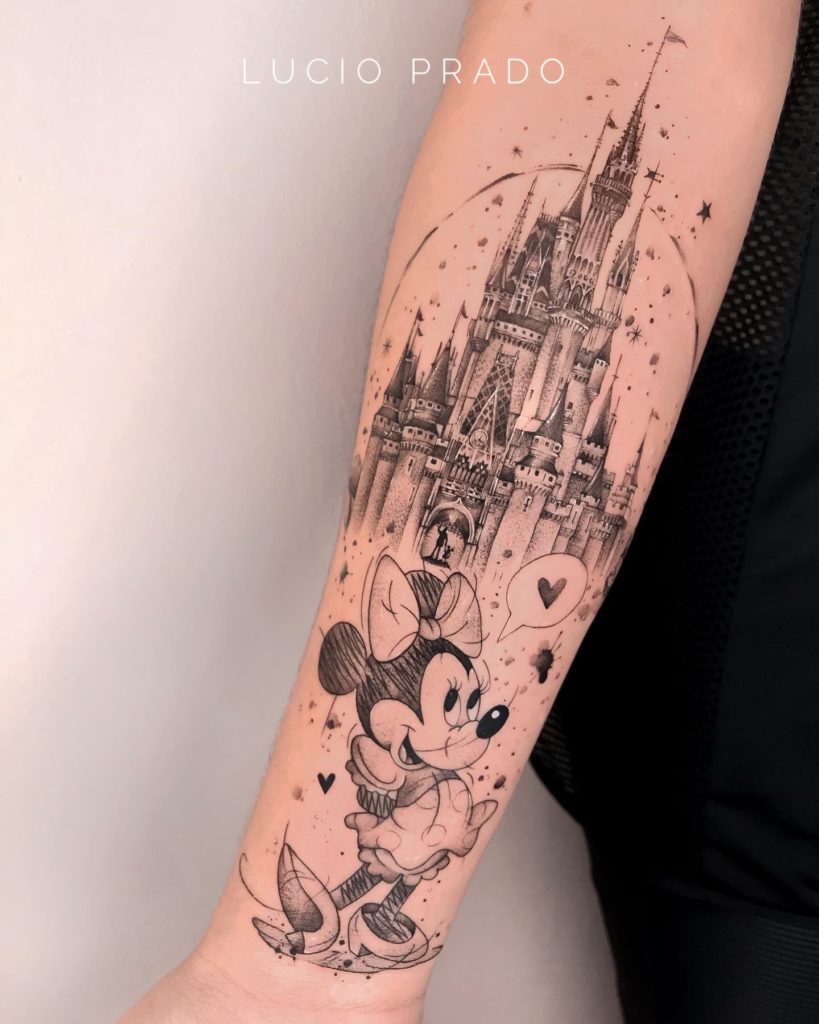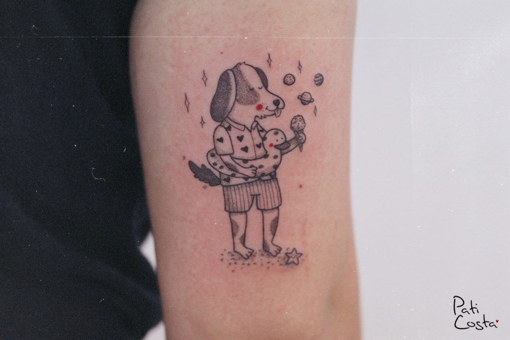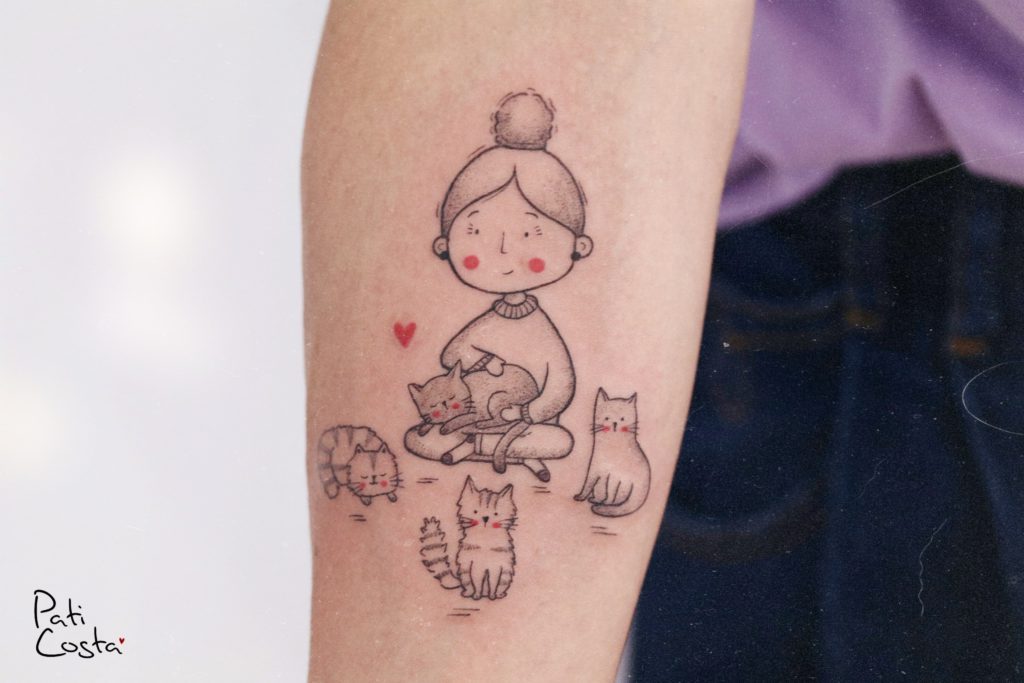 “Tatuo há pouco mais de 2 anos, mas sou designer e já trabalhava com um estilo próprio de ilustração, então trouxe para as tatuagens as minhas fofurices de bochechas vermelhas. Minha inspiração é o universo lúdico infantil, sua leveza e delicadeza. Gosto de trabalhar com linhas finas e sombras suaves, criando tatuagens exclusivas que contam histórias.”