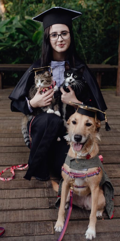“Com a vida corrida de faculdade, morando em república eu nunca tive a oportunidade de ter um pet só meu. Tiveram momentos durante a faculdade que eu dava lar temporário para gatinhos resgatados, era uma forma de ajudar e, ao mesmo tempo, matar a minha carência de bichinhos. Mas meu companheiro tem 3 gatinhos e eu me sinto como se fosse a madrasta deles ?.”