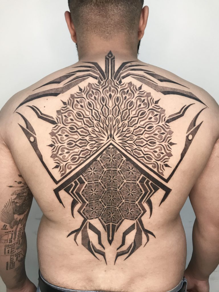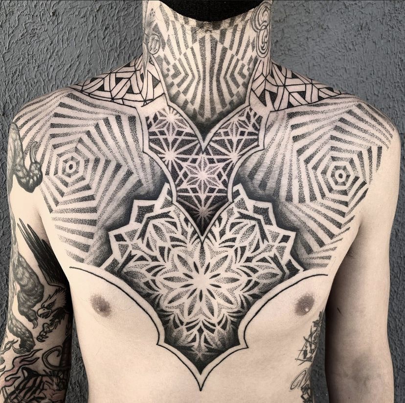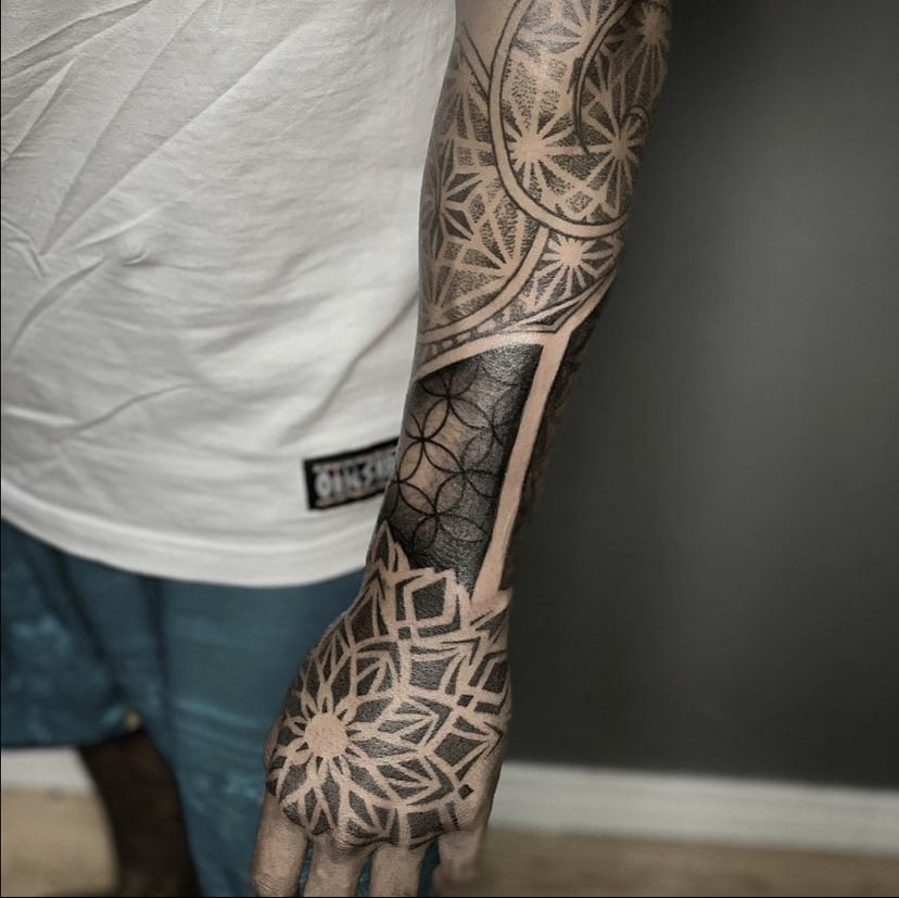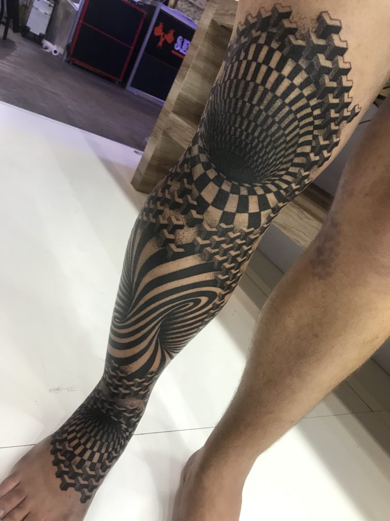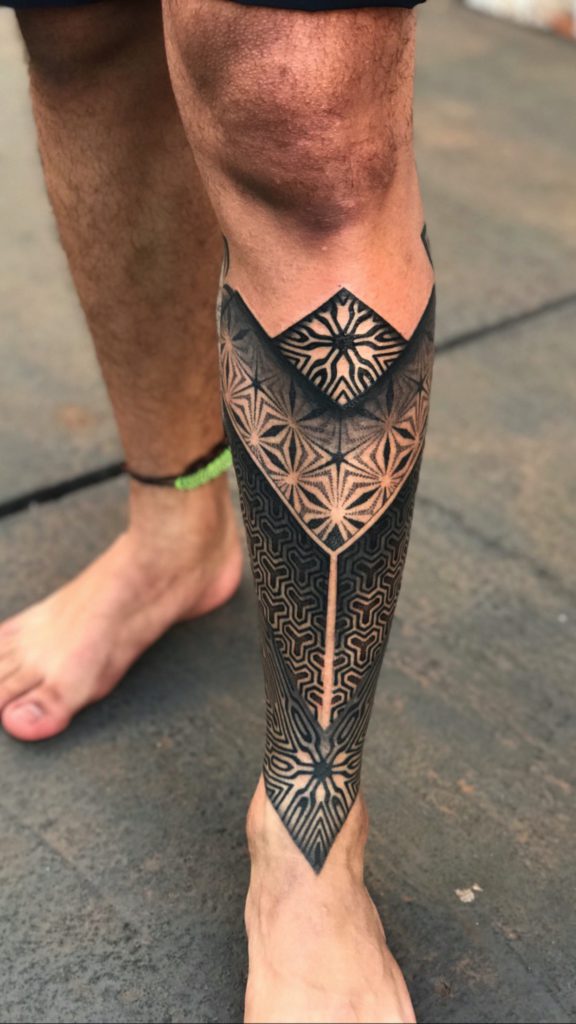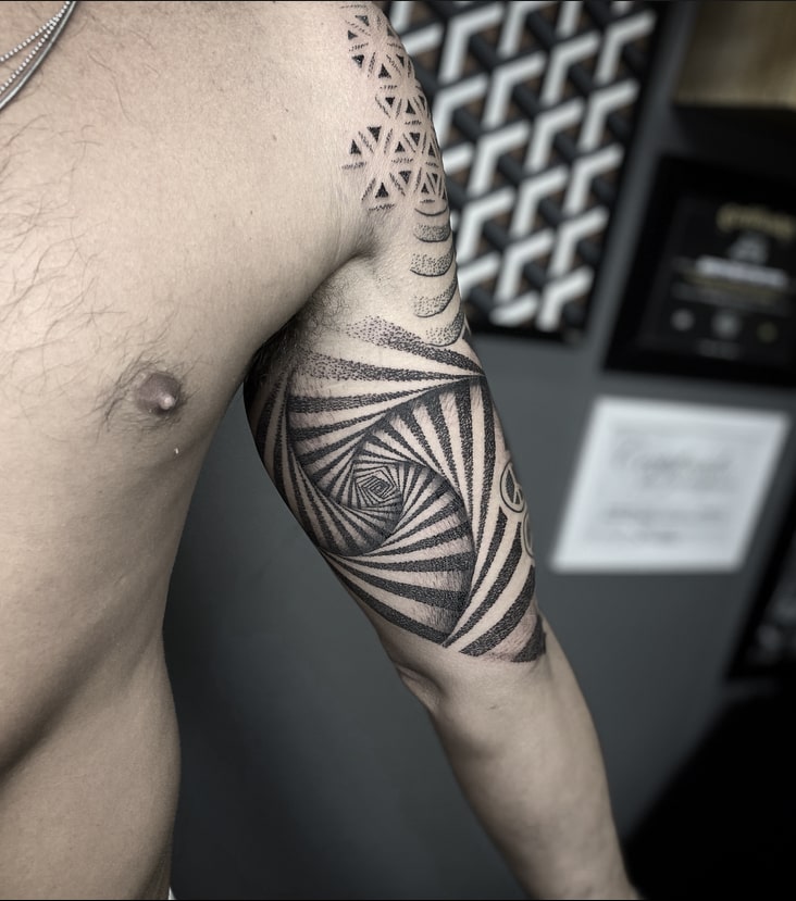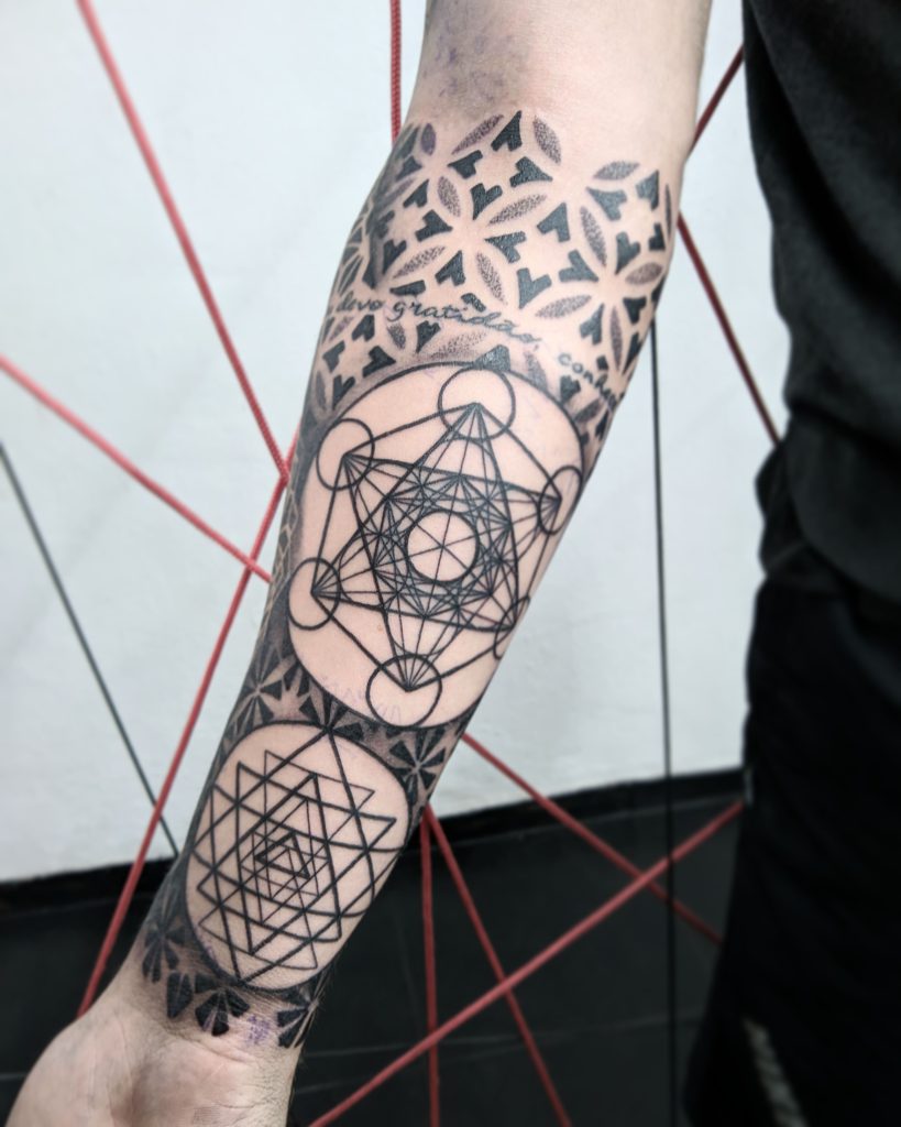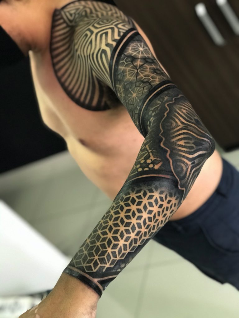 “Sempre fui um admirador da cultura da tatuagem, mas nunca considerei que eu pudesse ser tatuador. Em 2017 comecei a estudar e iniciei na pele em 2018. Comecei a tatuar sem pretensão de fazer geometria, mas com o tempo me vi buscando muitas inspirações nesse estilo e migrei completamente meu trabalho somente para a Geometria. Principais tatuadores internacionais: Raimundo Ramirez e Eric StrikerPrincipais tatuadores nacionais: Tanigutti e Marcelo Scaranari, Marcelo Simon e Xarope.”