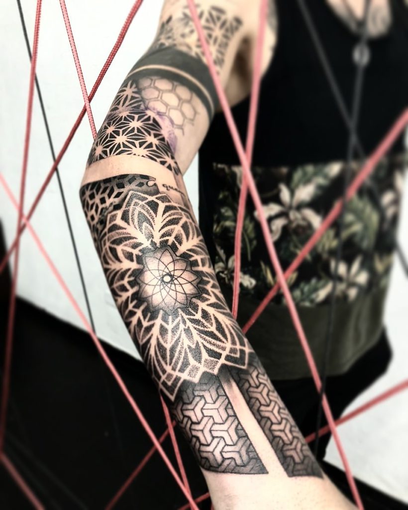 Tatuagem pontilhismo podem ser geométricas e seguir padrões.