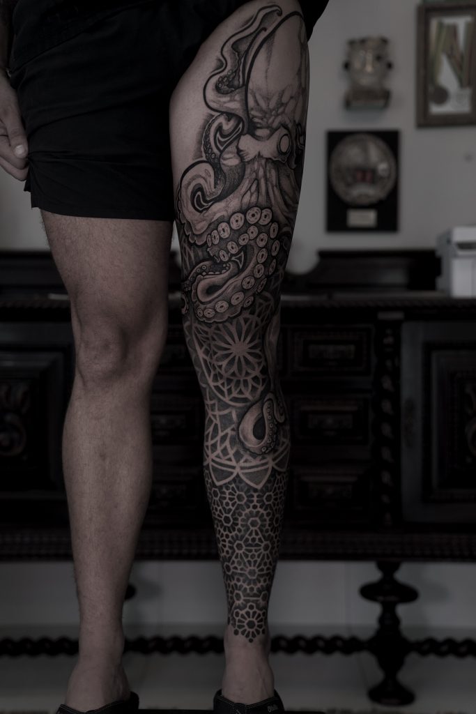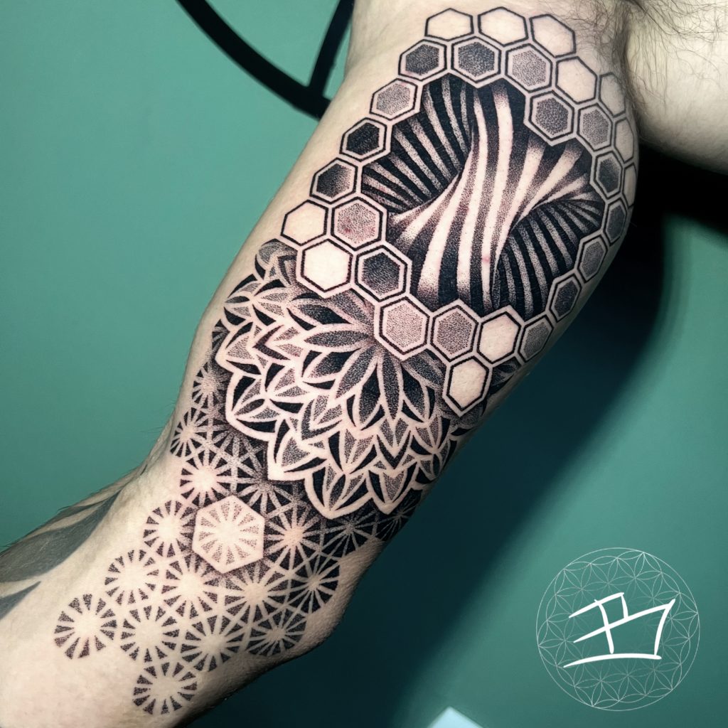 Ibrahim Barboza é um mestre em transformar histórias em geometrias através de suas tatuagens. Pioneiro na categoria geométrica, Ibrahim é conhecido por suas tatuagens com linhas limpas, formas simétricas e um equilíbrio perfeito entre complexidade e simplicidade. Sua paixão pelo pontilhismo resulta em imagens detalhadas e texturizadas, criando uma dimensão única. Ibrahim dedica-se a transmitir conhecimento para outros tatuadores e a transformar cada design em uma obra de arte natural e integrada à pele, sempre buscando representar a história de seus clientes de maneira única e profunda.