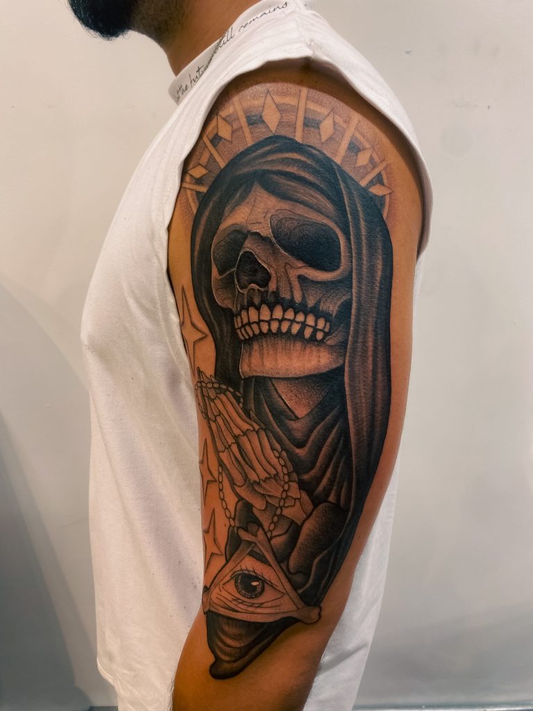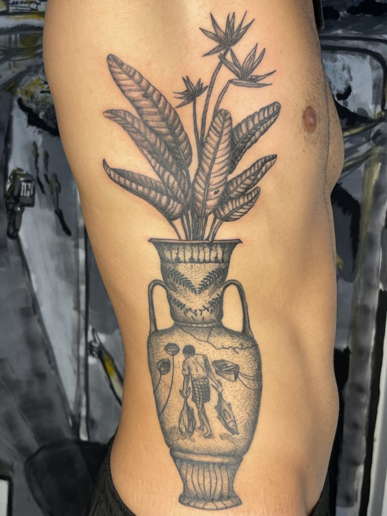 Théo Frainer é um artista excepcional de Vitória, ES, que acredita que uma tatuagem vai muito além da estética. Para ele, cada tatuagem de alto padrão é uma ferramenta poderosa para aumentar a beleza, a autoestima e o estilo de seus clientes. Théo não apenas cria tatuagens, mas transforma a pele em uma obra de arte viva e significativa. Seu estilo característico é o whipshading, ou rastelado, uma técnica que utiliza pequenos pontos para criar tridimensionalidade e profundidade em cada desenho. Théo é apaixonado por tatuar obras de arte, especialmente aquelas que pertencem aos movimentos renascentista, impressionista e surrealista.