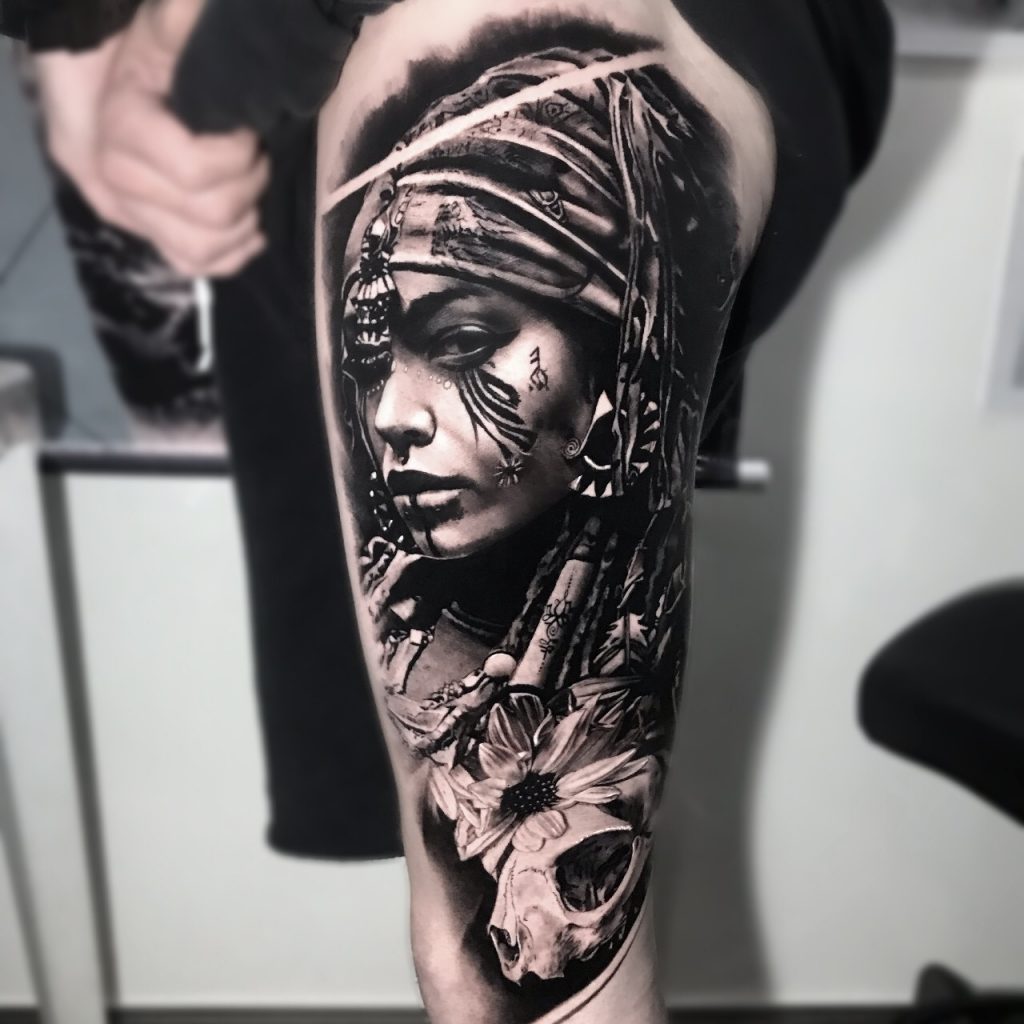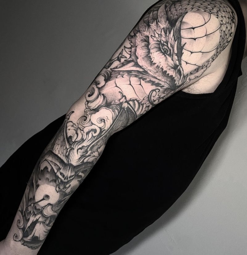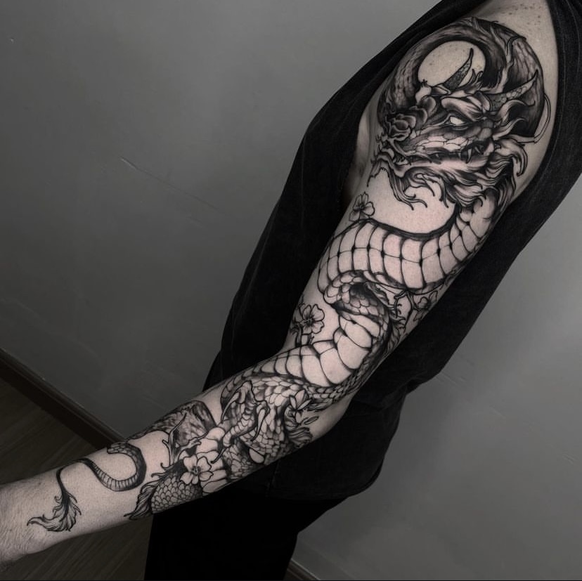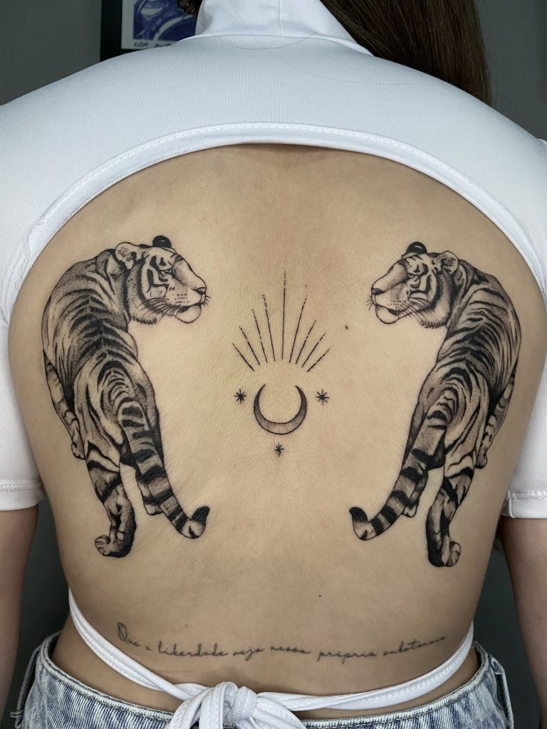 As tatuagens pretas carregam consigo uma profundidade e um poder que transcendem a arte convencional, transformando a pele em um testemunho vivo de histórias, sentimentos e identidades. Cada linha, cada sombra, e cada detalhe são meticulosamente pensados e executados para criar obras que vão além da estética, tocando a alma de quem as possui.