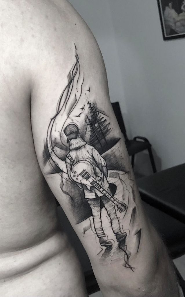 Tatuagem sketch é a tatuagem mais democrática na minha opinião, é aquela que pode ser personalizada, até mesmo se tiver fazendo uma reprodução de um filme ou desenho que você ama, pois, sempre terá ali o toque do artista, aquele toque na criação.