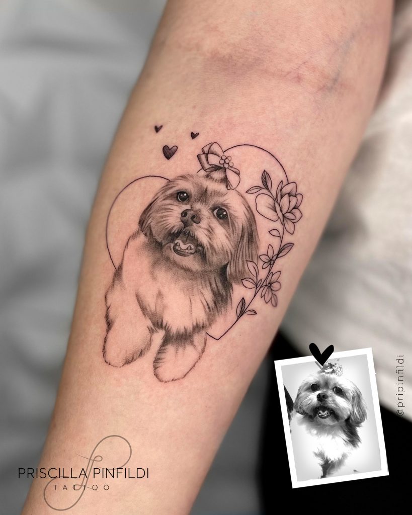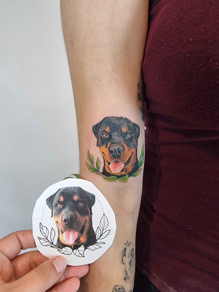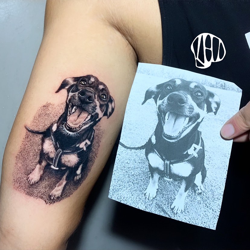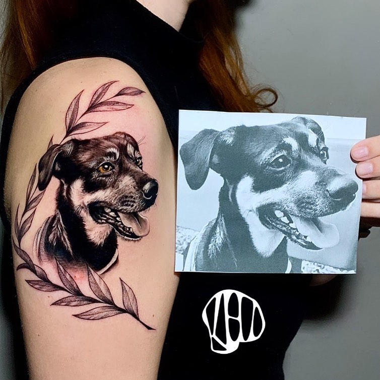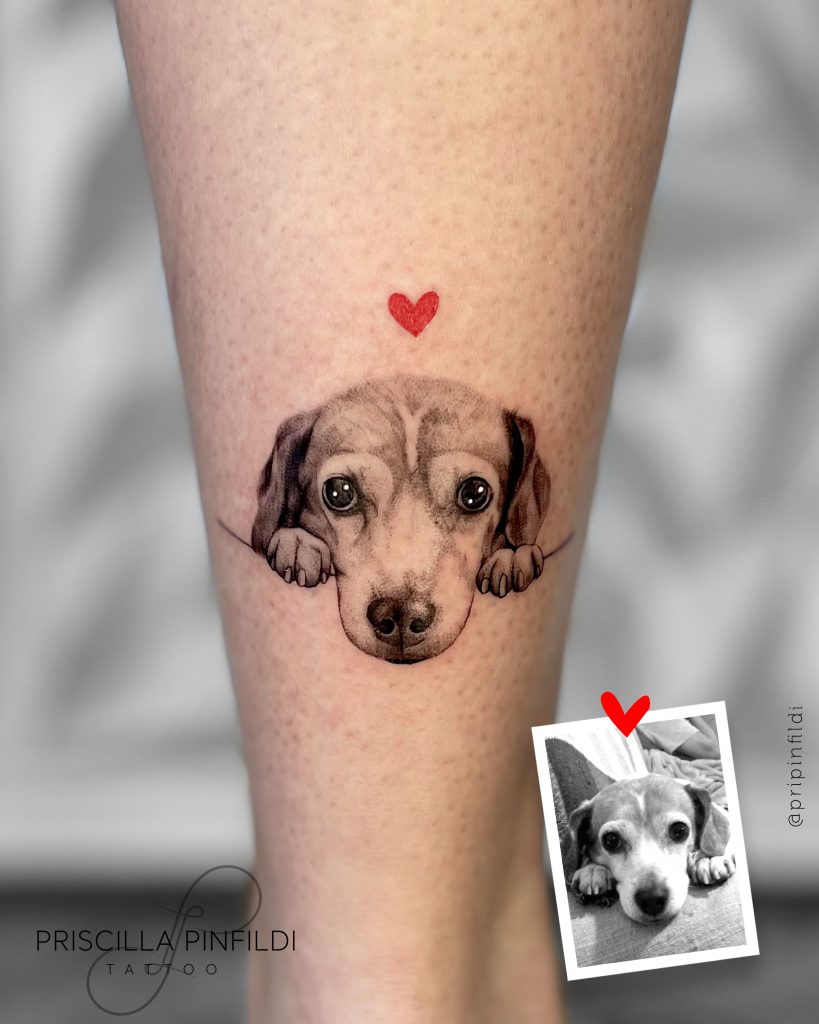 Uma tatuagem de cachorro pode representar a lealdade, fidelidade, companheirismo e em alguns casos, a saudade.
