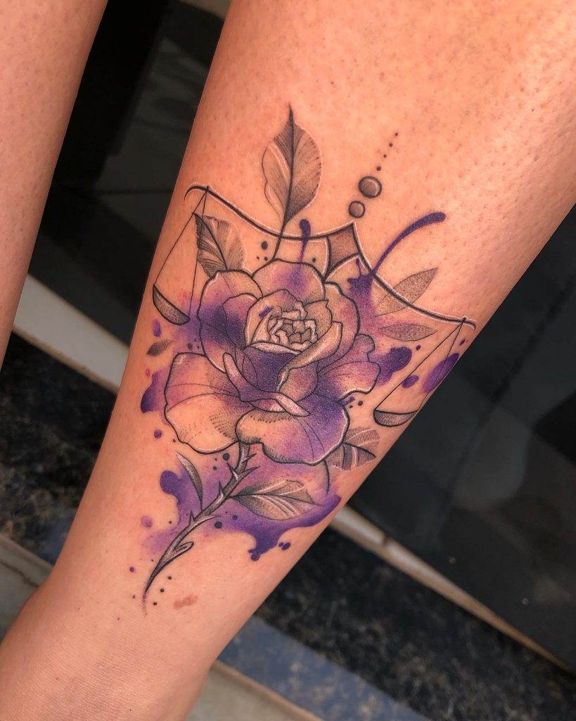 As tatuagens em aquarela são conhecidas por suas cores suaves e esfumadas, que imitam a técnica de pintura em aquarela. Esse estilo cria uma aparência etérea e delicada, como se a tinta estivesse fluindo pela pele. As tatuagens em aquarela são populares por sua capacidade de capturar a beleza de flores, animais e paisagens de uma forma romântica e artística. A ausência de contornos definidos e a fusão de cores proporcionam uma sensação de movimento e fluidez, tornando cada peça única e cativante.