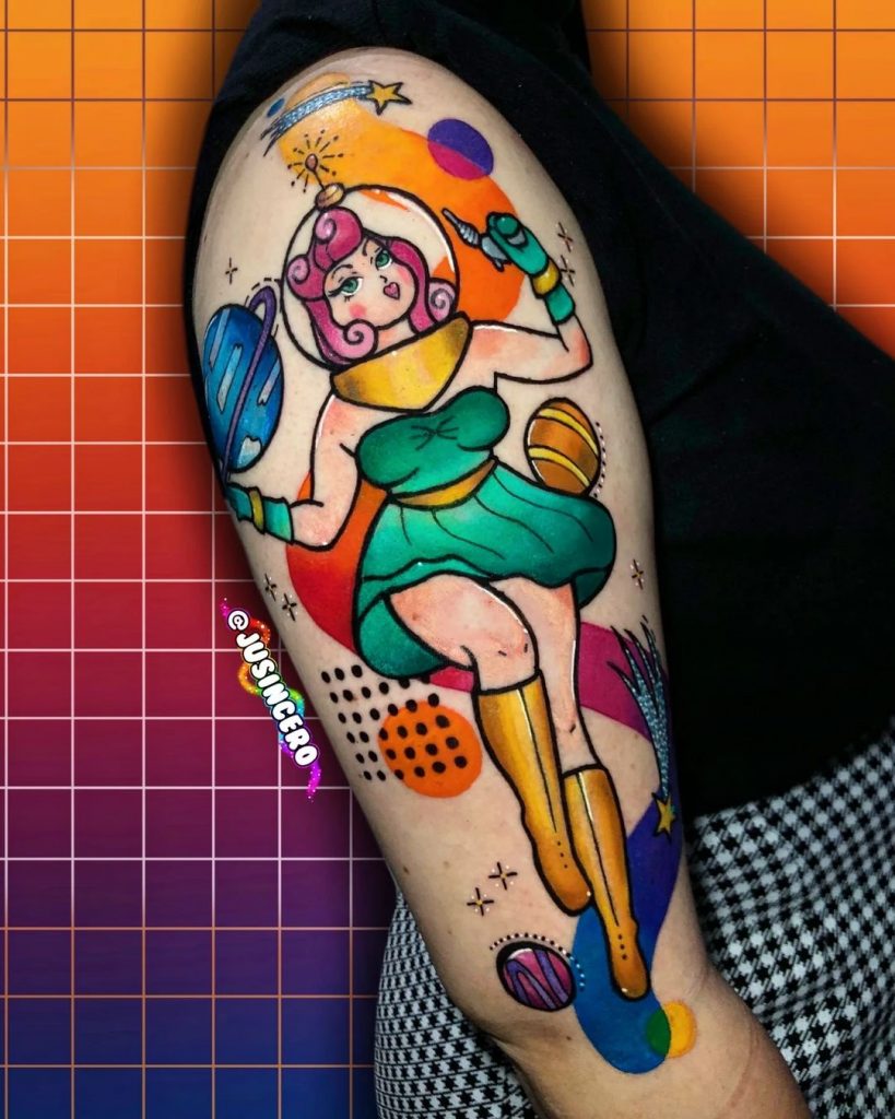 As tatuagens full color são caracterizadas pelo uso intenso e completo de cores em todo o design. Esse estilo é ideal para quem deseja uma tatuagem que realmente se destaque. Com a liberdade de usar uma ampla gama de tons, os artistas podem criar peças dinâmicas e impactantes. Quer se trate de um design tradicional, uma cena elaborada ou uma mistura de elementos diferentes, as tatuagens full color garantem que cada detalhe seja capturado de forma vibrante e deslumbrante.