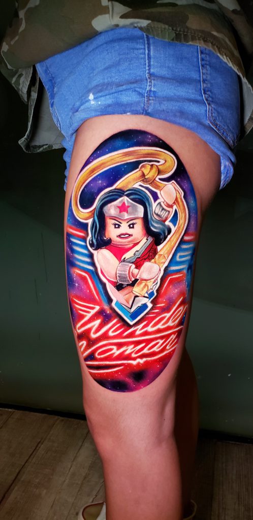“Sou tatuador há 5 anos e o desenho me inspira e deixa minha vida mais leve e bonita desde criança! Nesse tempo consegui transformar meu amor em profissão. Minha maior inspiração é a temática Geek, aonde me encontro e posso usar e abusar de minha criatividade em minhas criações e quando tudo isto tem uma pitada de cor se torna mais interessante ainda!”