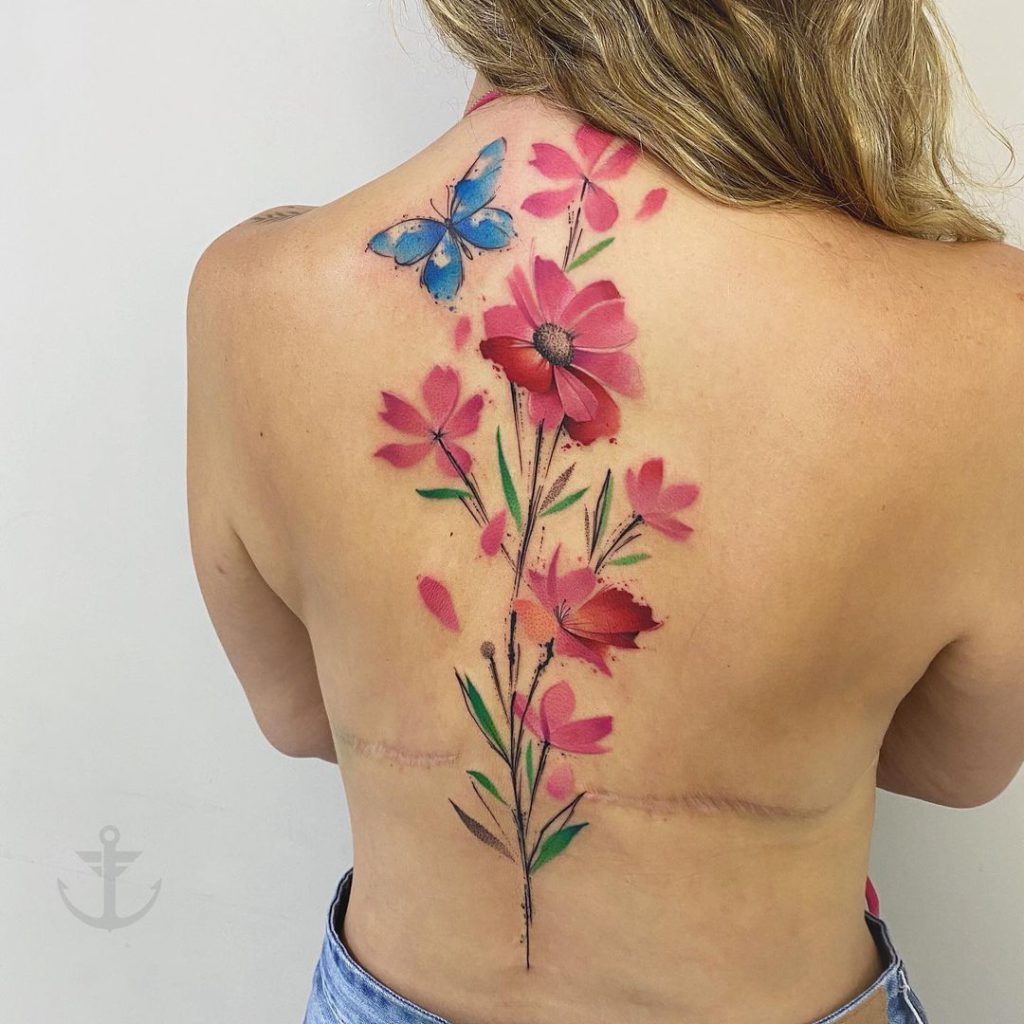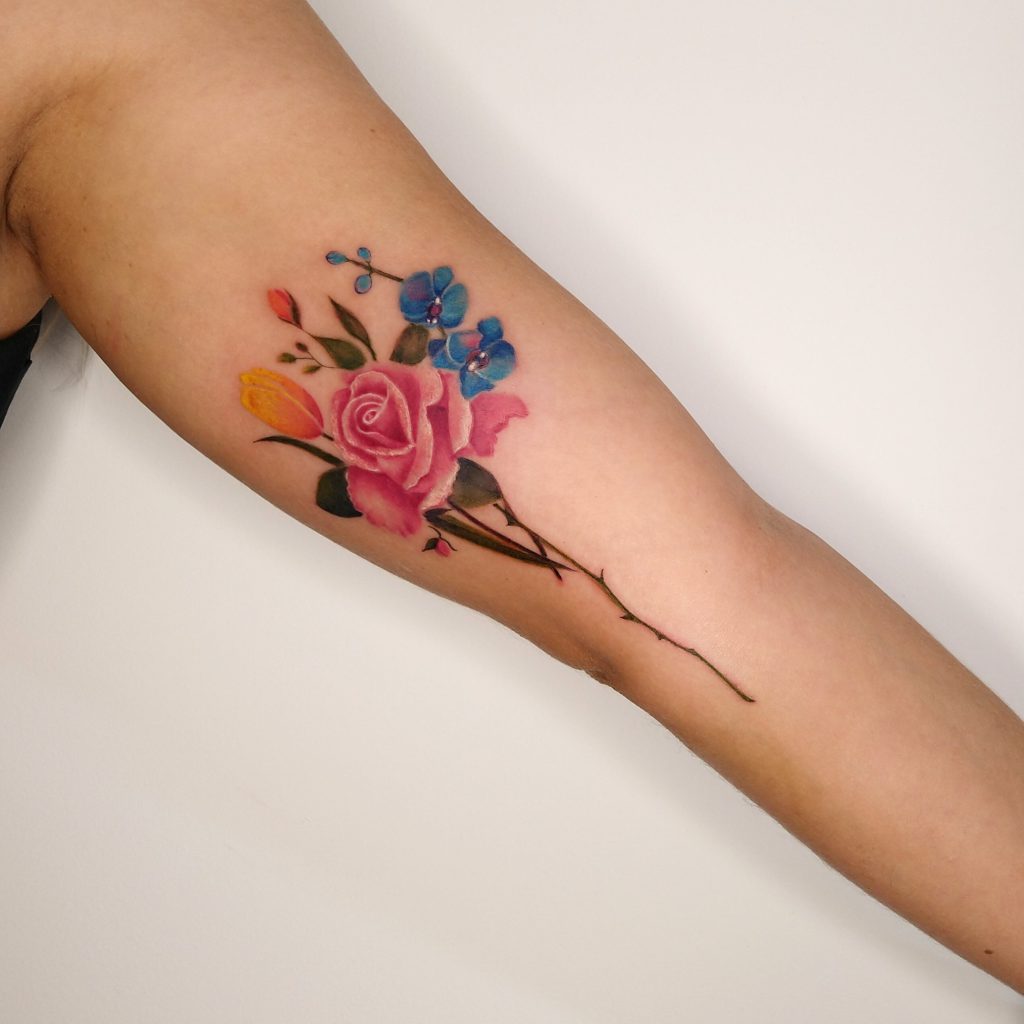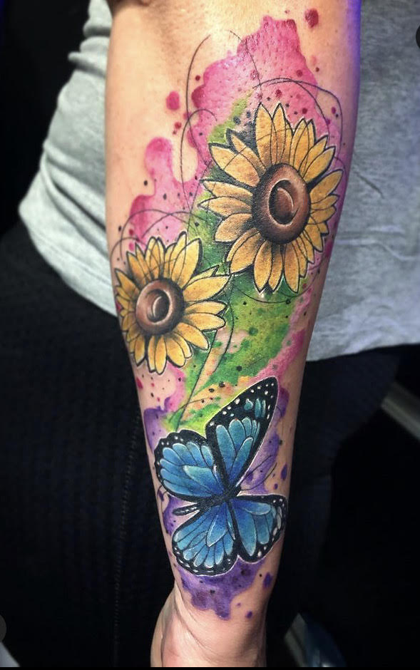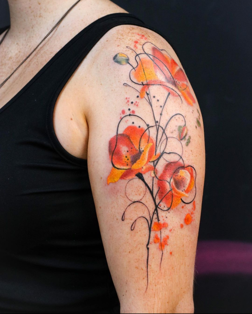 “A arte esteve presente na minha vida desde sempre, mas foi com a necessidade que eu me encontrei na tatuagem. Sou tatuadora há cinco anos, quatro deles focados no estudo da cor. Atualmente trabalho com florais, obras de arte, abstrações, reproduções de fotos e coberturas.“