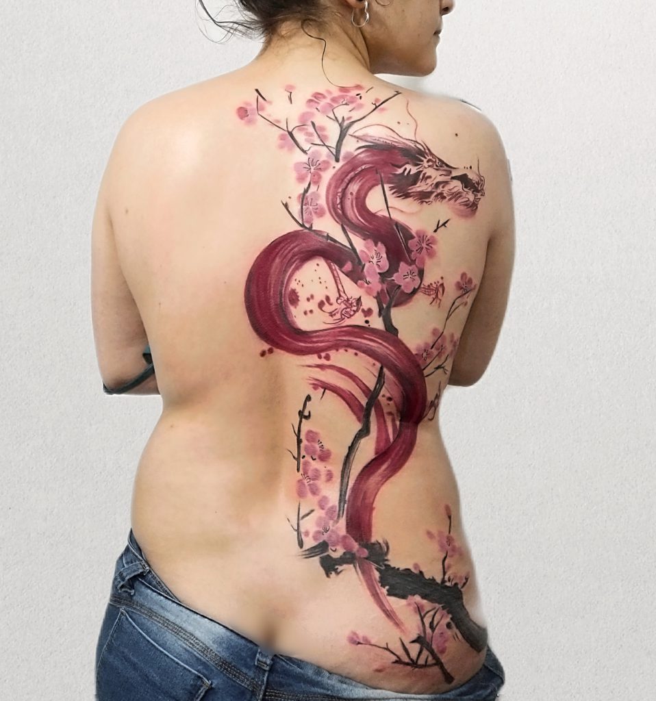 “Sou tatuadora há 4 anos. Sempre desenhei, desde pequena, mas a vida me levou a me formar em Psicologia antes de iniciar minha trajetória na tattoo. Não atuo mais como psicóloga, mas sinto que essa bagagem soma imensamente, porque acredito que a sensibilidade para ouvir as pessoas e traduzir simbolismos artisticamente é um dos aspectos mais importantes no meu trabalho como tatuadora. Gosto de trabalhar com muitos estilos diferentes: fineline, blackwork, aquarela, neotraditional, além de criações livres que não se encaixam em estilos específicos.”