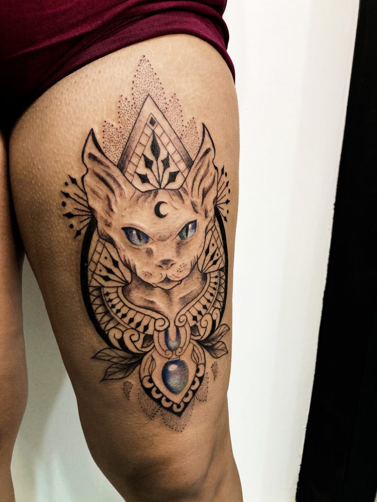 “Me chamo Thi Brandão e Tatuo há 7 anos, focando atualmente nos estilos Pontilhismo, Blackwork e Geométrico. Muitas coisas me inspiram, artes visuais, música, as pessoas, as histórias, meus amigos. A Tatuagem pra mim é uma troca bem intensa entre o que o cliente deseja eternizar em seu corpo e os caminhos que eu posso oferecer pra isso acontecer, e tudo vai fluindo nessa troca de energia.”